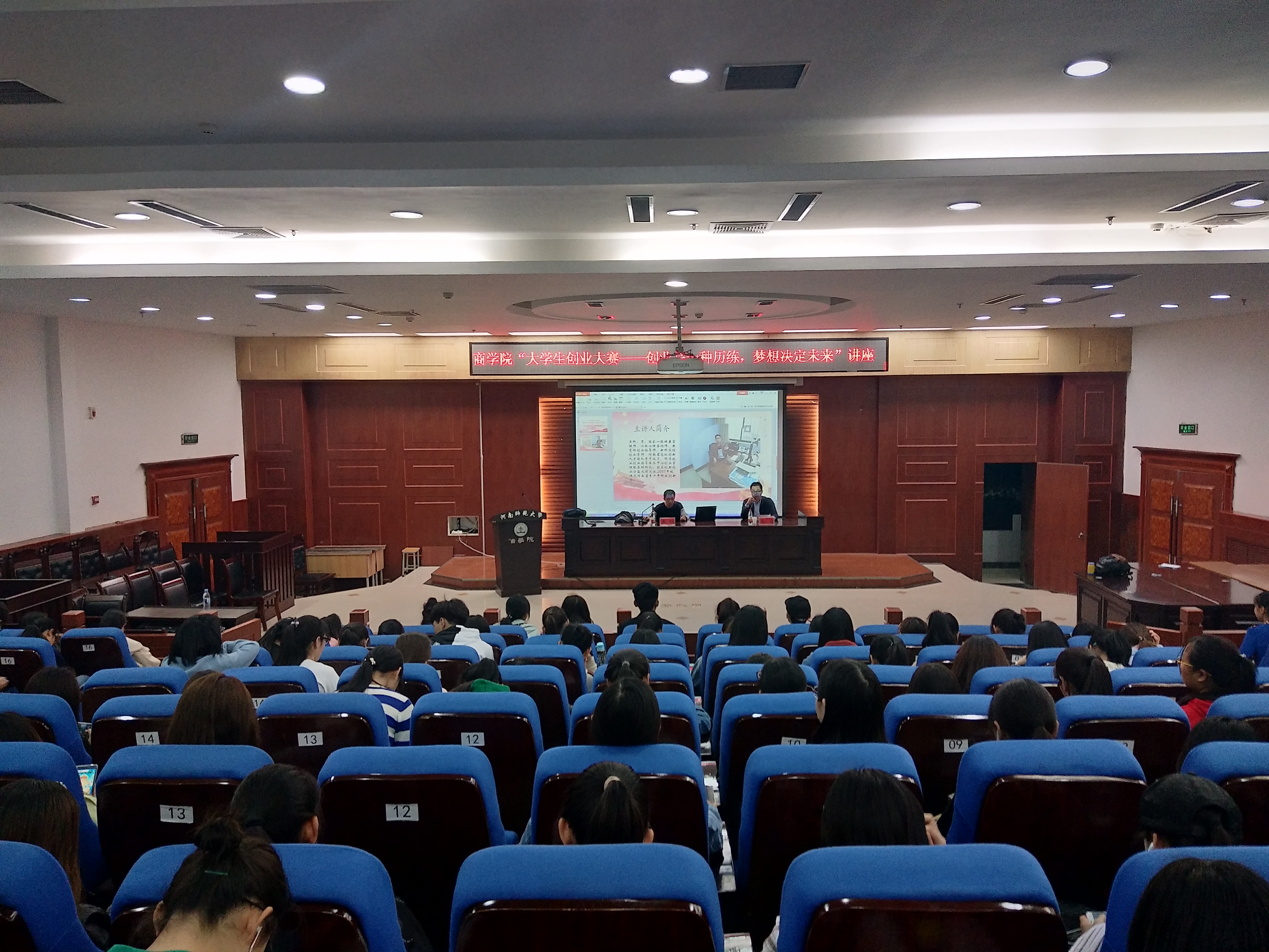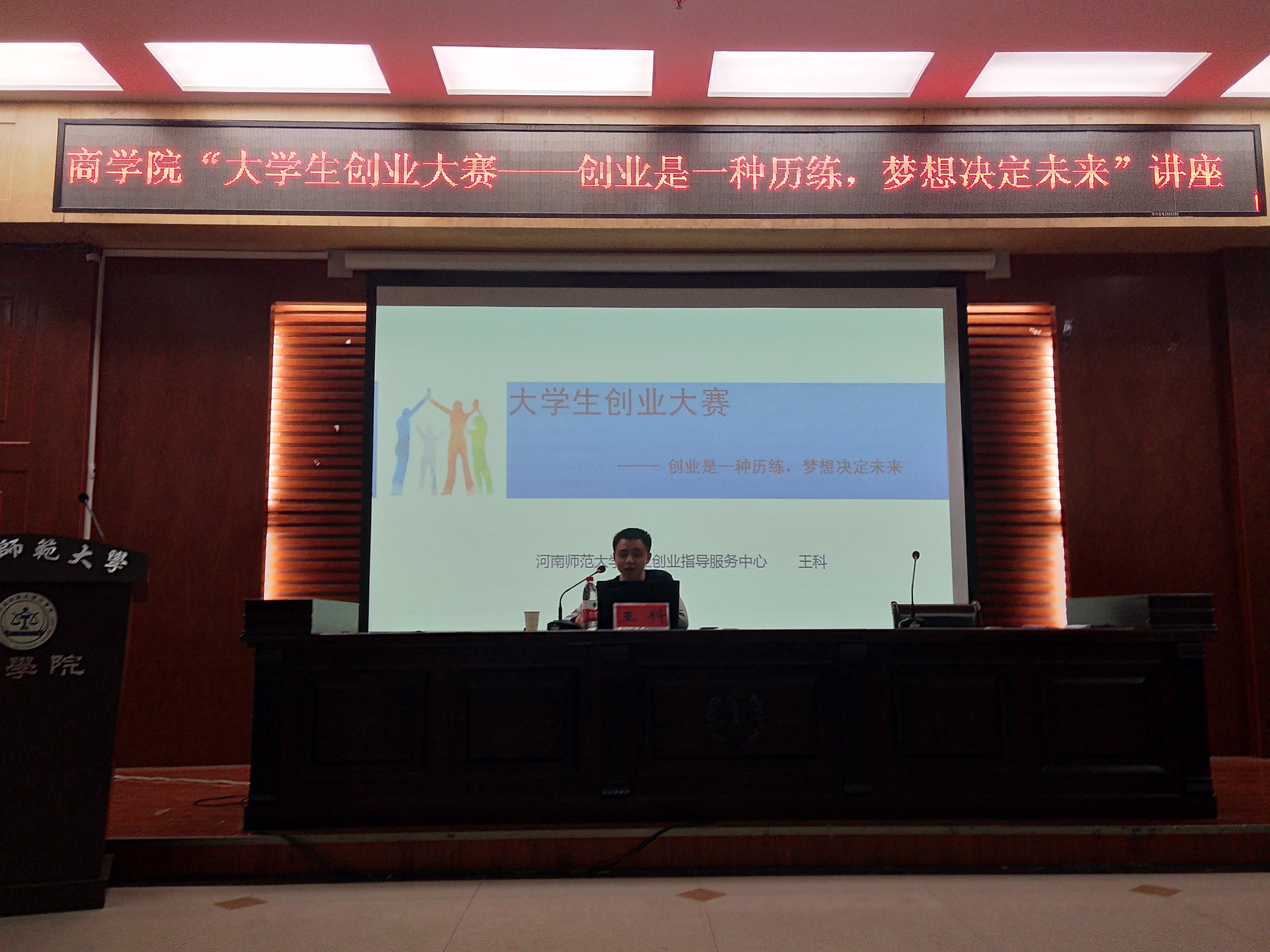 为进一步培养大学生创新创业意识,提升创新创业的实践能力,4月16日晚,商学院于我校东区模拟法庭举办“大学生创业大赛——创业是一种历练,梦想决定未来”主题讲座。就业创业指导服务中心创业管理服务科科长王科应邀担任主讲人,讲座由商学院团委书记王岩主持。