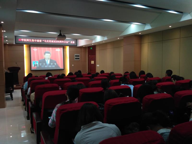 5月4日上午10点,马克思诞辰200周年大会在北京人民大会堂隆重举行 。商学院教工党员和学生党员、入党积极分子共百余人于商院楼119报告厅集中观看大会直播。