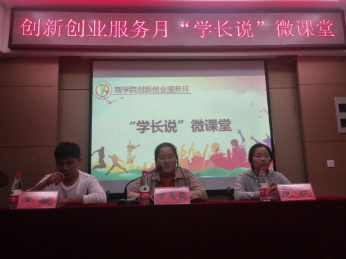 10月24日晚七时,由商学院团委学生会科创部策划组织的创新创业服务月之“学长说”微课堂活动在学院楼119报告厅顺利开展。商学院优秀学生代表方思懿、范杭、尹航受邀参加此次活动并担任主讲人,商学院团委学生会主席团成员及2018级部分学生到场聆听。