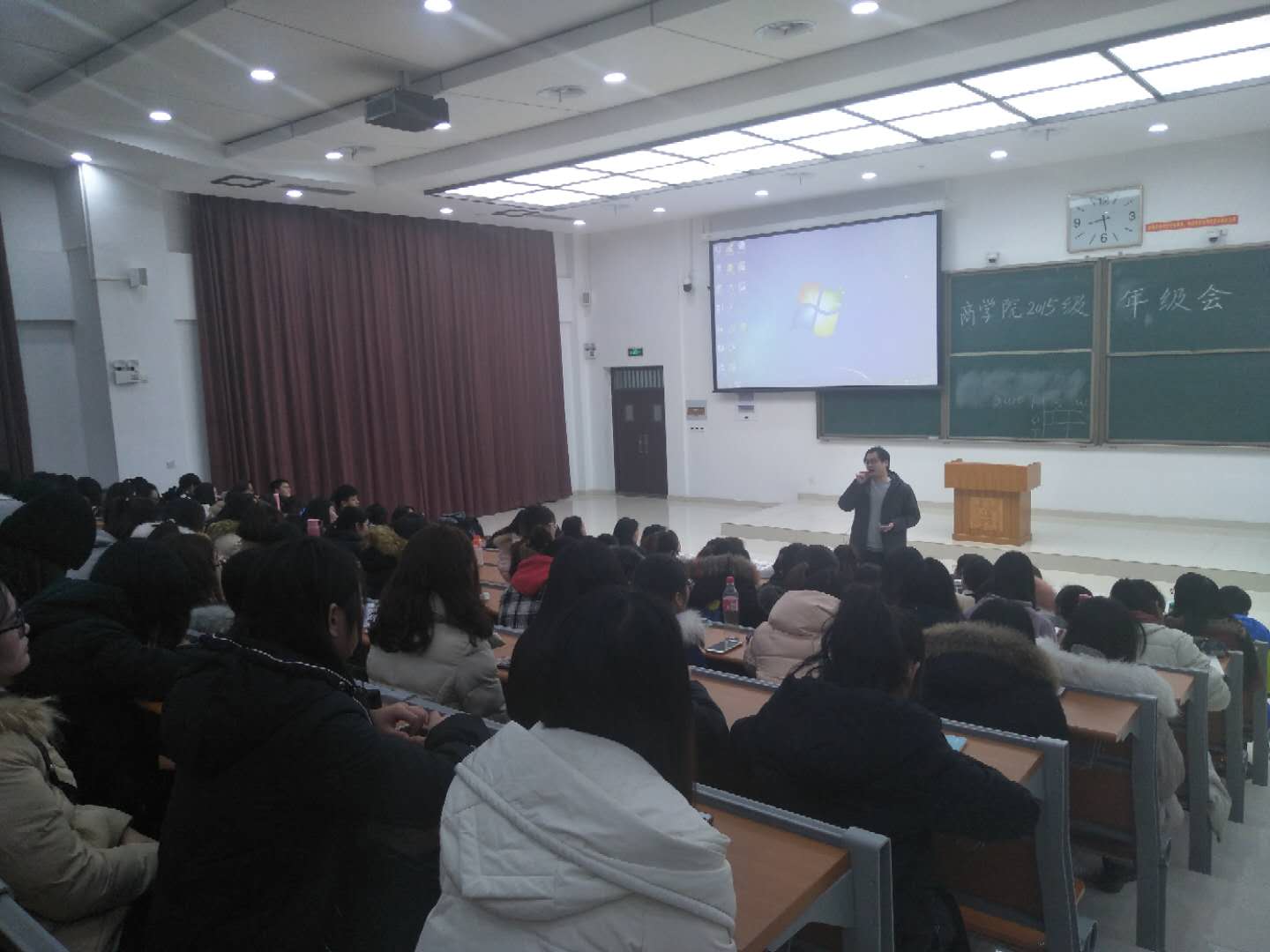 1月10日下午四时,商学院2015级年级会于东综楼327室召开。商学院2015级辅导员王岩、班主任李广瑜、石晓华,兼职辅导员祖鹏阳、王艳博出席会议,2015级全体学生到场参会。