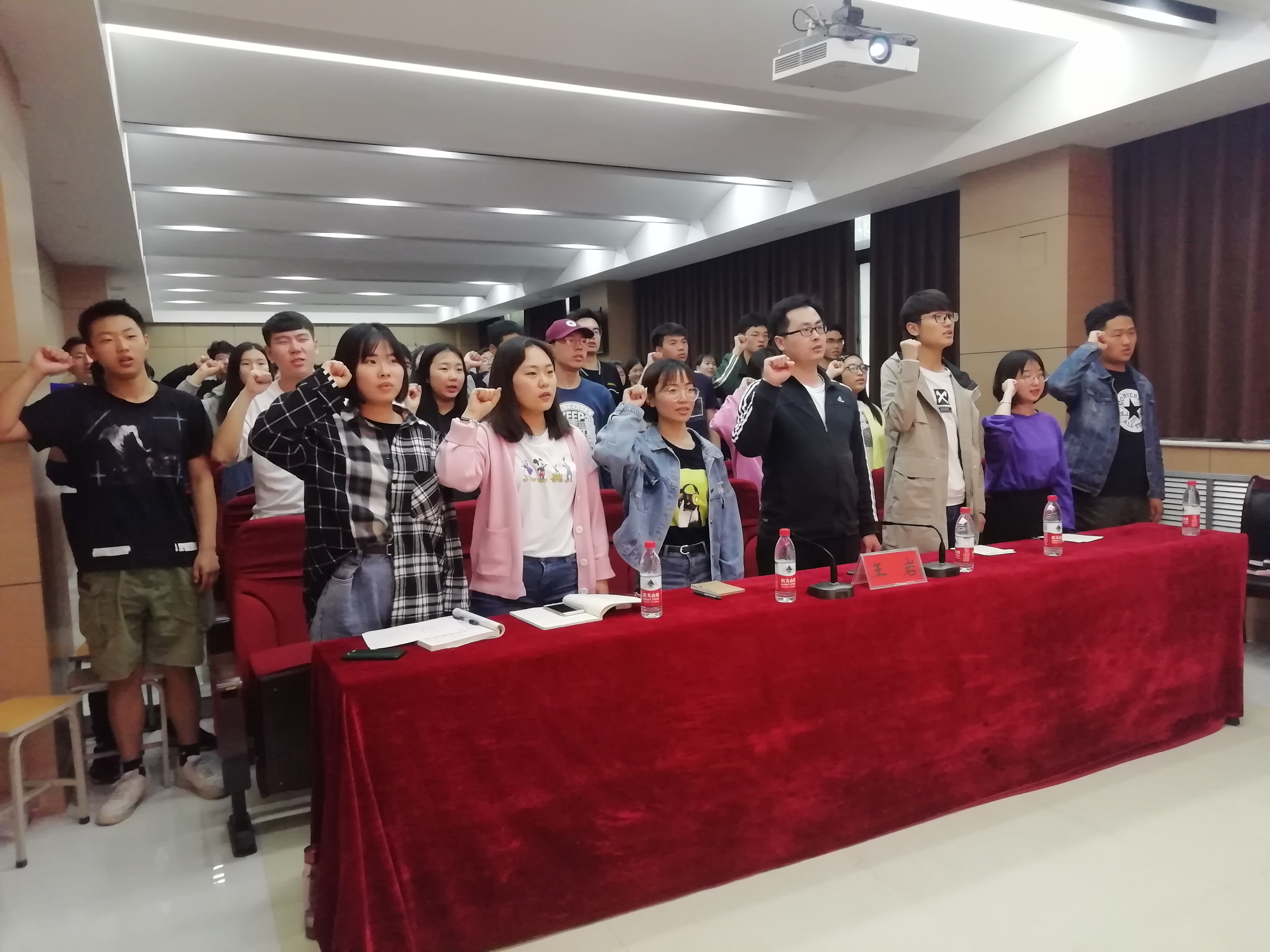 活动开始,全体成员观看了影片《建党伟业》的节选片段,通过对历史的再次回顾,使同学们对党有了更清晰的认识,也更感到党的伟大和光荣。随后,王岩详细介绍了在当时的时代大背景下,中国青年是如何通过反抗斗争来维护国家主权。他认为五四运动不仅使得无产阶级首次登上政治舞台,而且促进了马克思主义在中国的传播,为中国共产党的建立奠定了基础。他强调,作为当代青年大学生,要有坚定的理想和信念,理性爱国,胸怀世界,在实现中国梦的道路中书写自己的精彩人生。活动最后,全体成员一起大声宣读入团誓词,合唱共青团团歌。