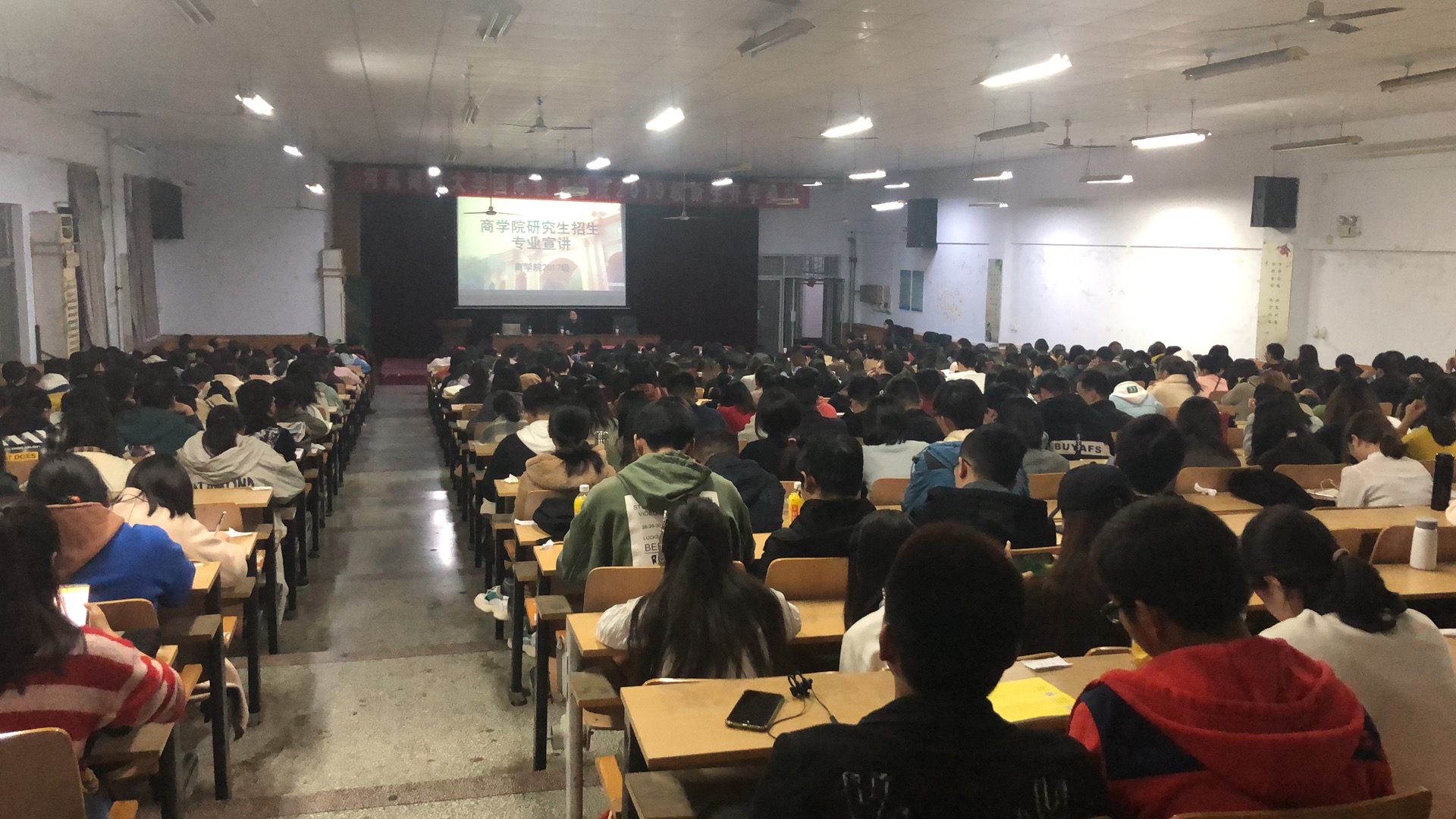 11月9日,学院研究生秘书王喜刚老师于西区多功能报告厅为2017级本科生举办了“商学院研究生招生专业宣讲”专题讲座。