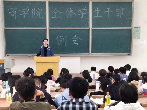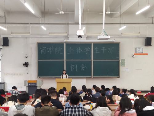 11月12日中午,商学院于东教2-102教室召开第二次全体学生干部例会。商学院团委书记王岩应邀出席本次例会,全体学生干部及2018级、2019级的班长和团支书参与了此次例会。
