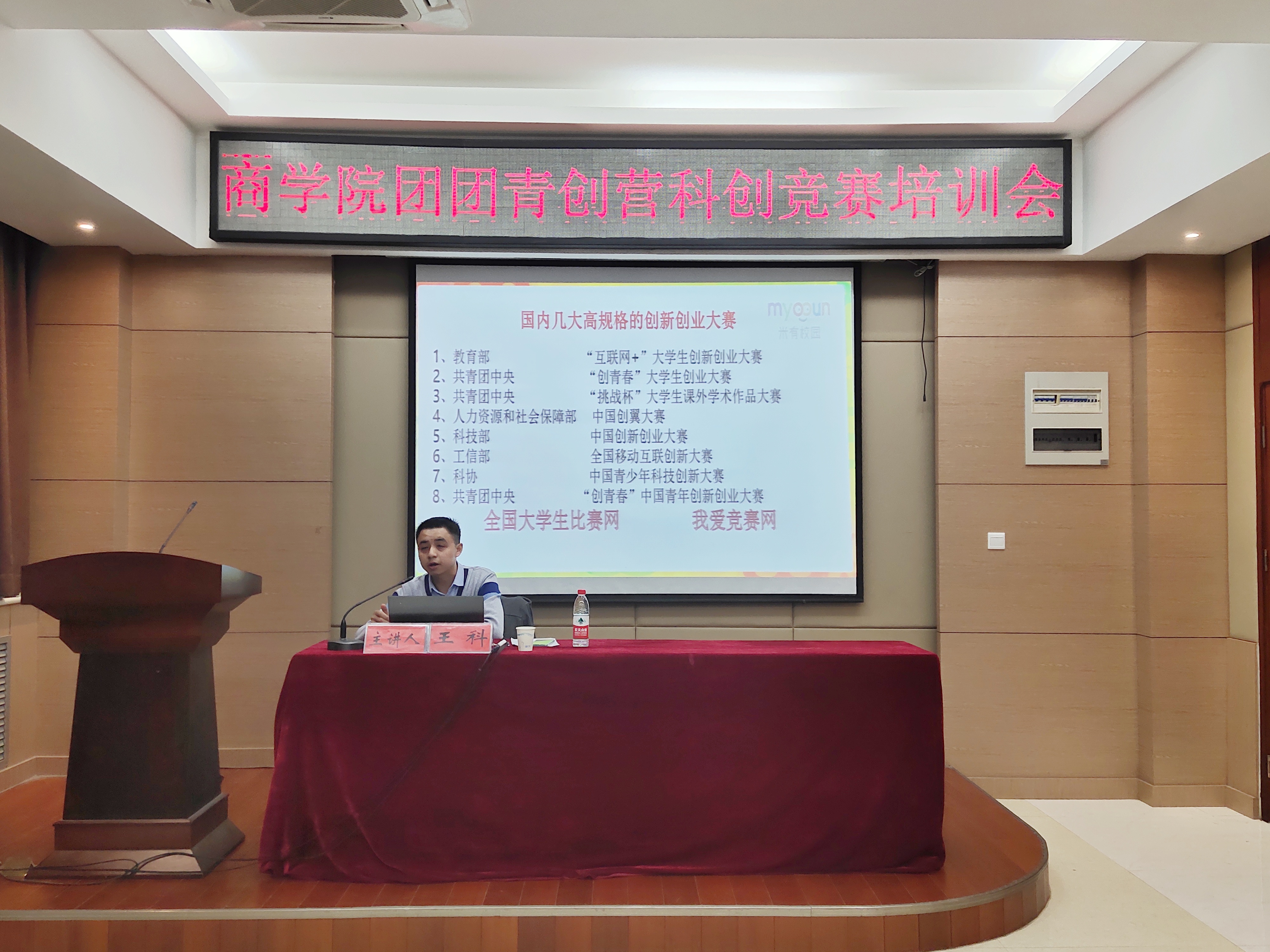 为增进学生对创新创业类比赛的了解,提高学生的创新创业能力,11月15日晚,商学院于学院楼119报告厅举行了“团团青创营”科创竞赛培训会。就业创业指导服务中心创业管理科科长王科应邀出席并担任主讲人。培训会由商学院团委书记王岩主持,2019级部分学生到场聆听。
