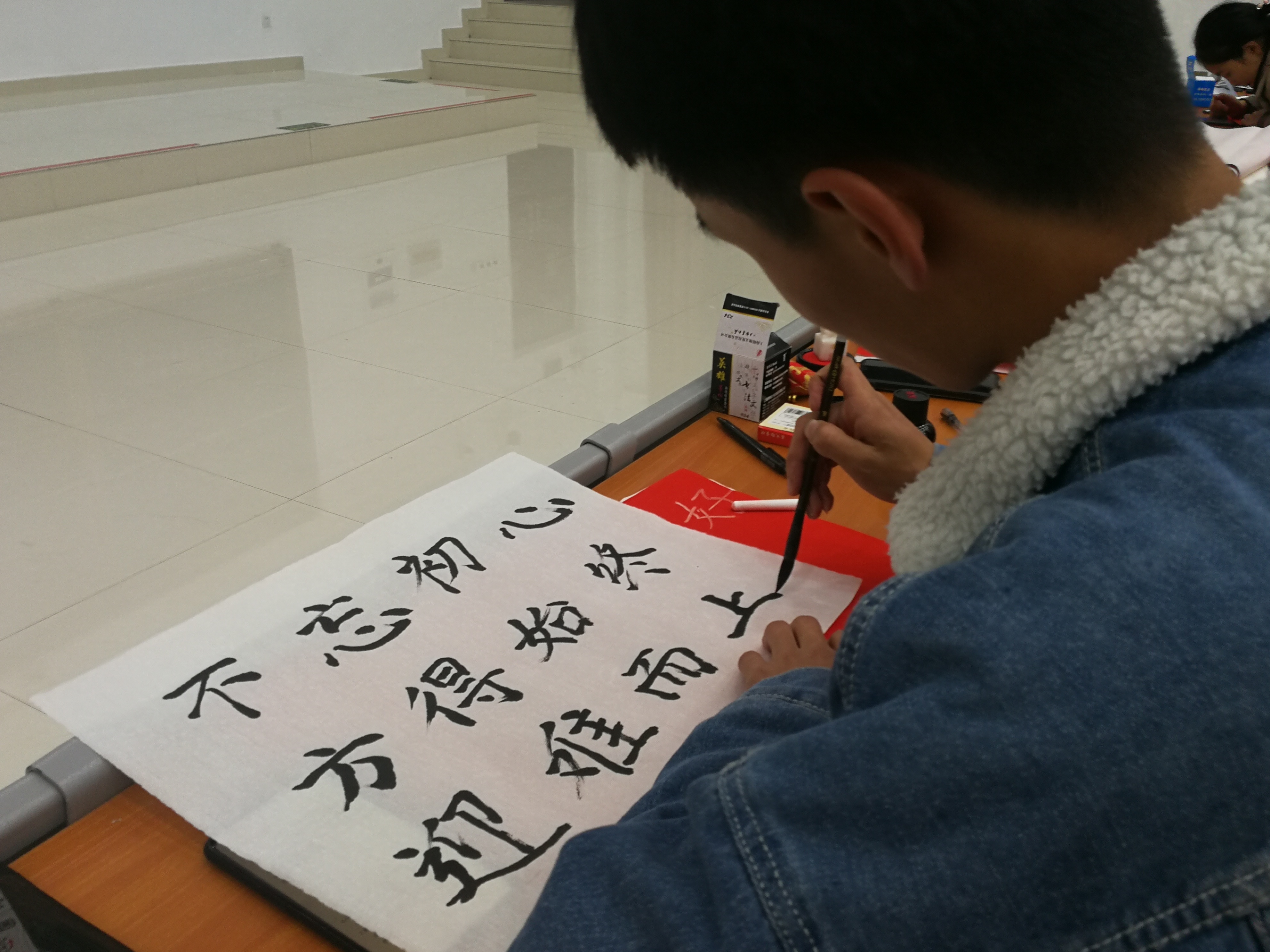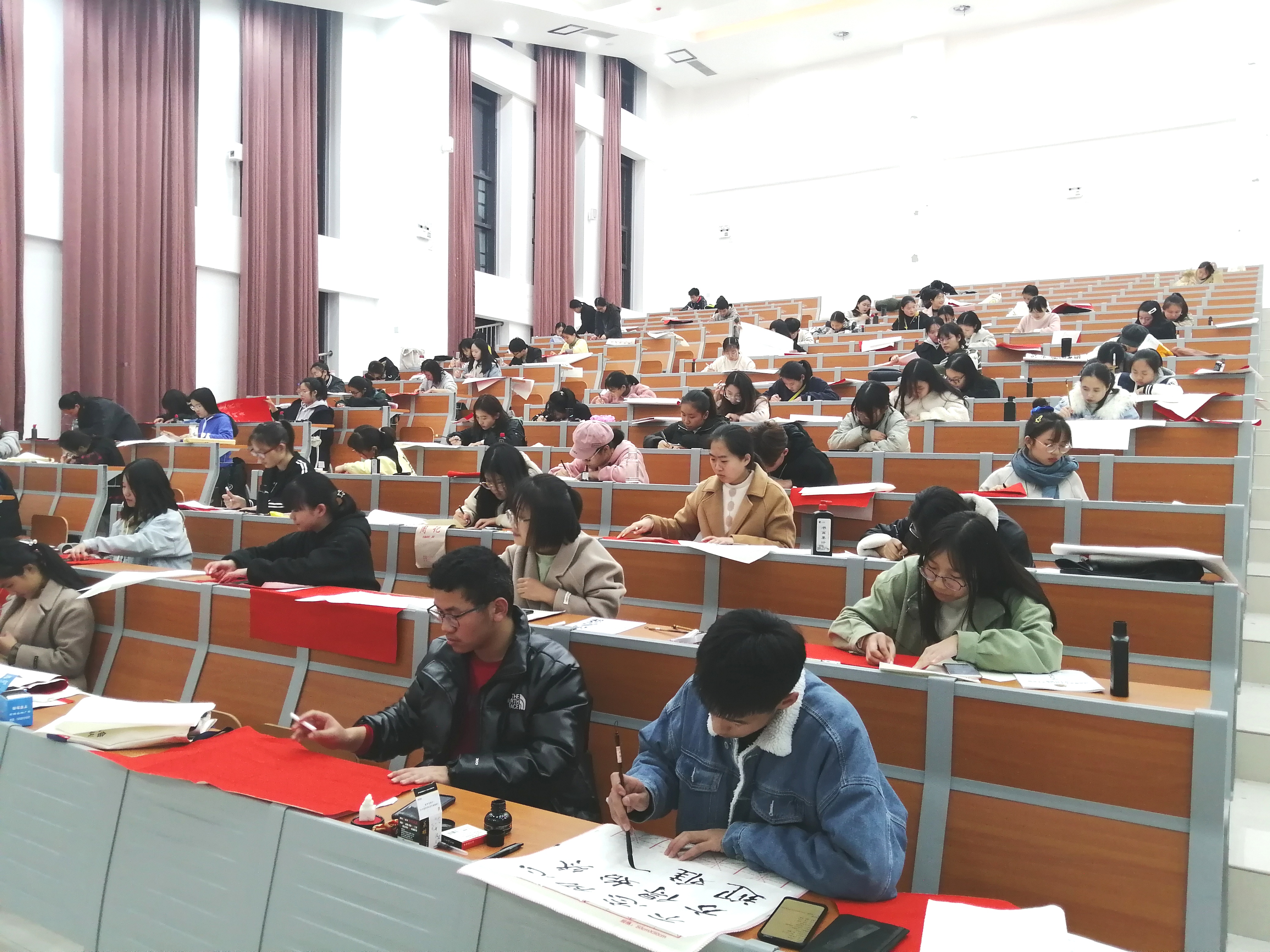 比赛项目分别为毛笔、钢笔和粉笔,要求参赛选手在规定的时间内,现场书写比赛内容。比赛开始之前,主持人向参赛同学宣读本次比赛的相关流程和注意事项,并鼓励同学们赛出风采,赛出水平。比赛过程中,选手们聚精会神,沉着冷静,用心书写每一展笔画、每一个文字。钢笔字铿锵有力,笔锋遒劲;粉笔字干净规整,结构匀称;毛笔字行云流水,笔酣墨饱。选手们都尽力地发挥着自己的书写技能,经过一个多小时的伏案执笔,写出了一幅幅各具特色的书法作品,为此次比赛画上了圆满的句号。