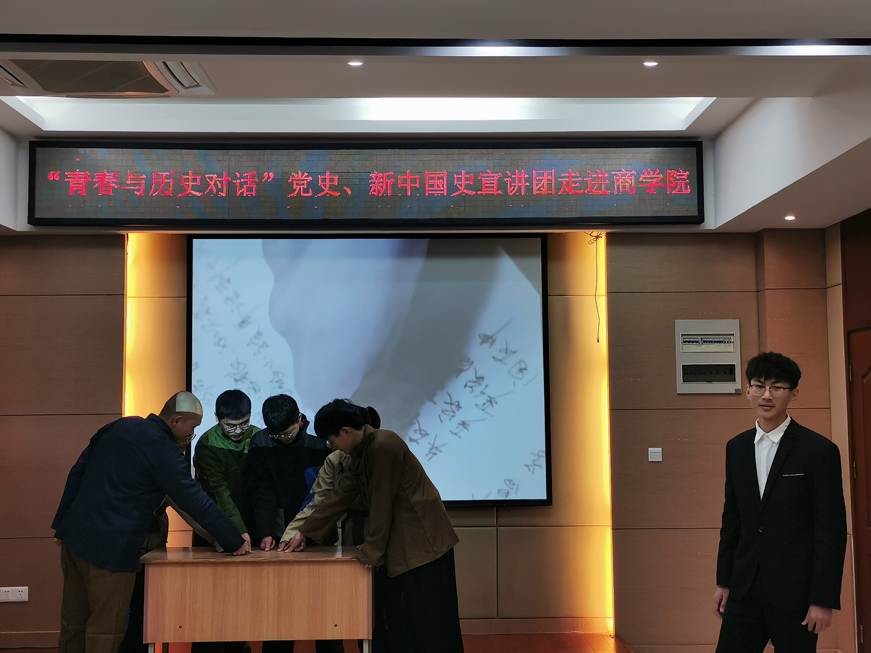 为深入学习贯彻习近平新时代中国特色社会主义思想和党的十九大精神,积极落实我校“不忘初心、牢记使命”主题教育活动相关要求,12月17日中午,商学院于学院楼119学术报告厅举行“青春与历史对话”党史、新中国史宣讲活动。商学院副院长杨玉珍应邀出席本次活动,学生工作相关负责人及2019级学生代表到场参加。