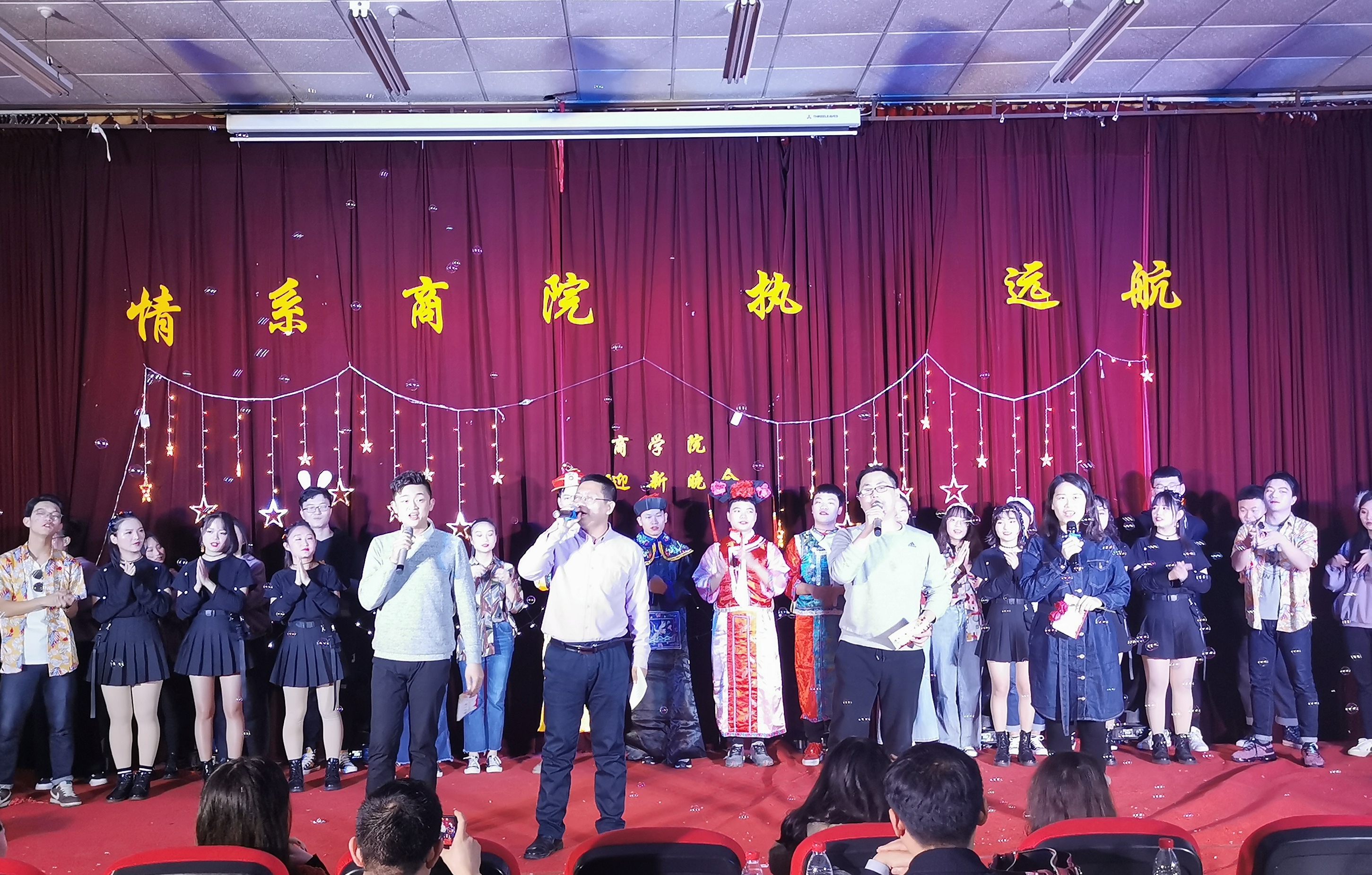 流光溢彩迎新夜,心心连新齐飞扬。12月22日晚,商学院于多功能报告厅举行2019年“情系商院,执梦远航”迎新晚会。商学院党委副书记段红伟、副院长陈清利、学生工作相关负责人应邀出席了此次晚会,院团委、学生会、院社联全体成员以及2019级全体新生共同参加了此次活动。