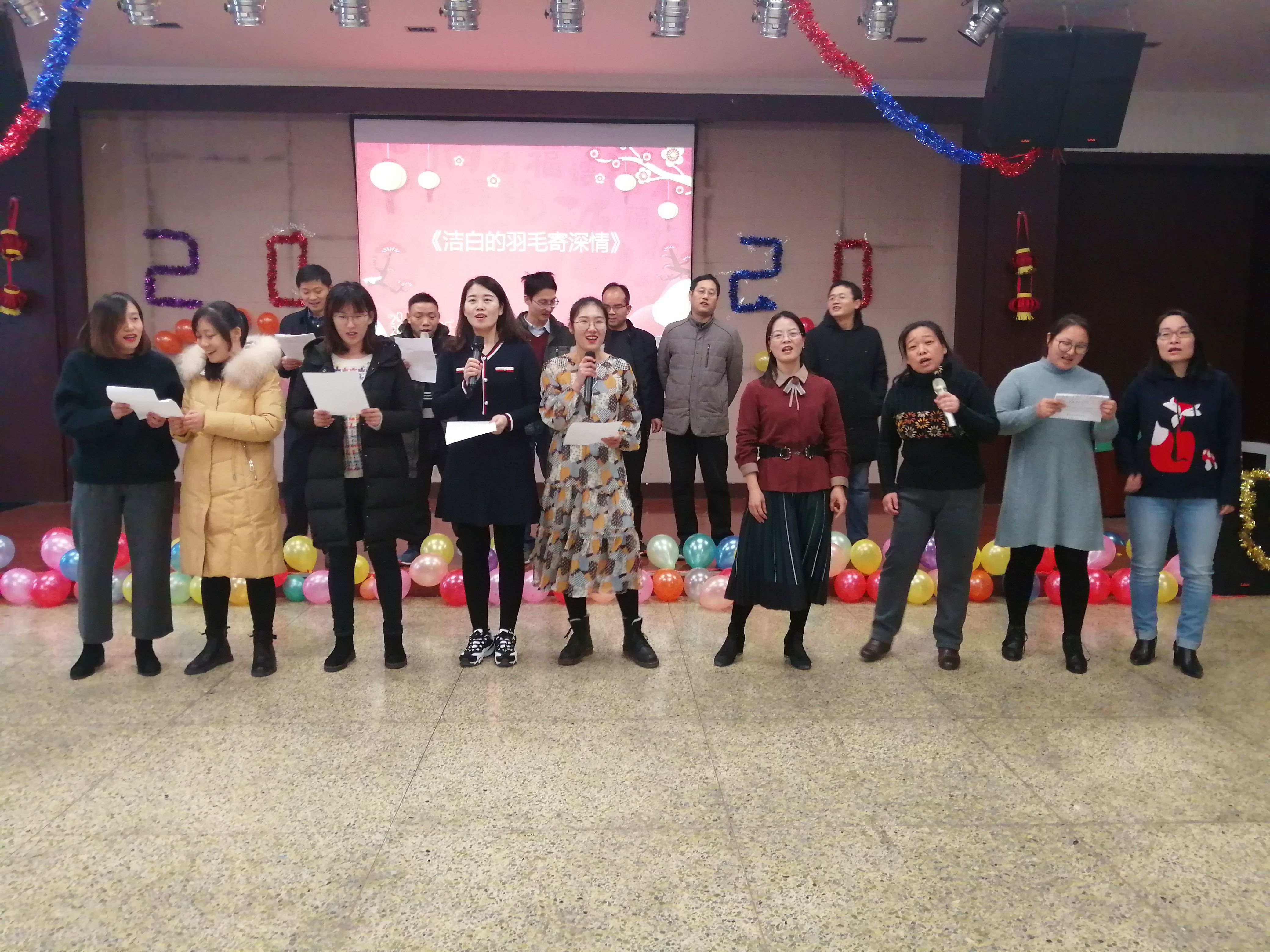 随后,在主持人热情洋溢的解说下,师生们各展才艺。活力四射的舞狮、饱含深情的朗诵、动人心弦的演唱、热情洋溢的舞蹈、清耳悦心的古筝对弹等多种形式的表演悉数登场,让人眼花缭乱。游戏环节“疯狂抖一抖+螃蟹步”欢快上演,师生们纷纷尽力抖去身上的便利贴,滑稽动作引得观众阵阵欢笑。整场演出观众掌声、欢呼声不断,处处洋溢着迎新的喜悦。最后,老师们带来了合唱《我和我的祖国》,不仅体现着老师们的多才多艺,同时也展现了年轻教师的青春风采。茶话会在欢乐喜庆的氛围中圆满结束。