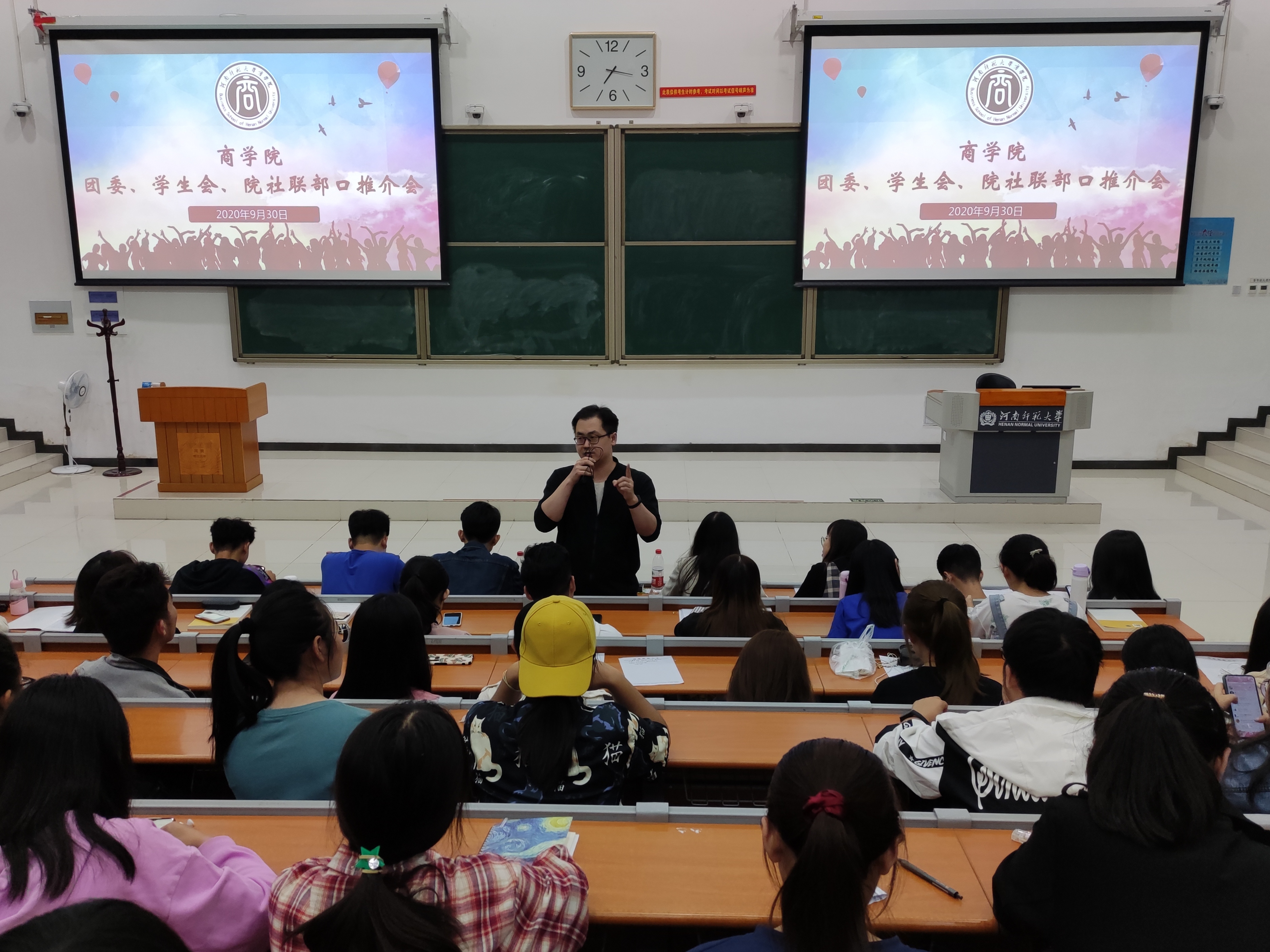 9月30日下午,商学院于东区综合楼127教室召开2020年团委和学生会部口推介大会。学院相关负责人,团委、学生会和院社联全体成员及2020级新生参加本次大会。