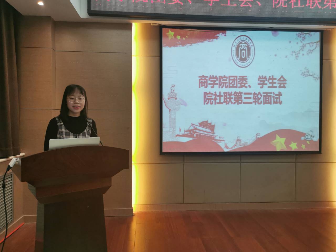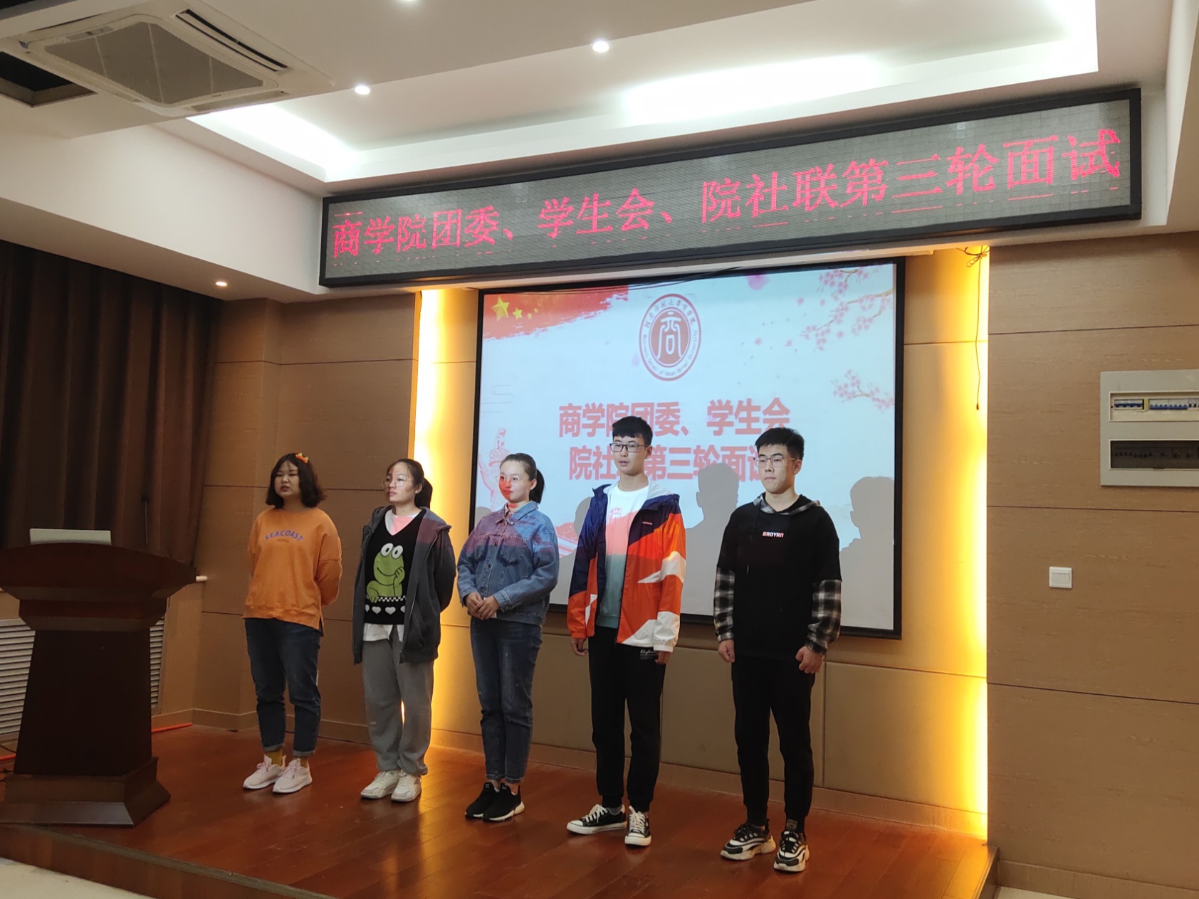 10月10日上午,商学院于院119报告厅成功举行第二十届团委、学生会、院社联招新面试。商学院团委书记王岩以及团委、学生会、院社联相关负责人担任本次招新面试官。