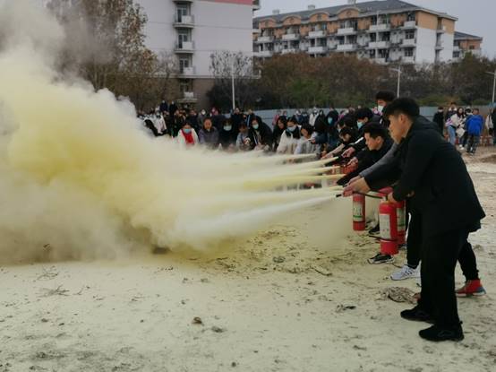 保卫处消防科老师针对自救呼吸器的正确使用和注意事项、灭火器的种类、各种灭火器的正确使用方法、扑救初起火灾技巧、火灾发生后如何疏散逃生为参训师生员工作了详细讲解。保卫处领导分组指导参训师生依次使用灭火器对火源进行扑救实操,师生们面对火源,沉着冷静,按照基本操作步骤和方法,将燃起的火堆迅速地成功扑灭。