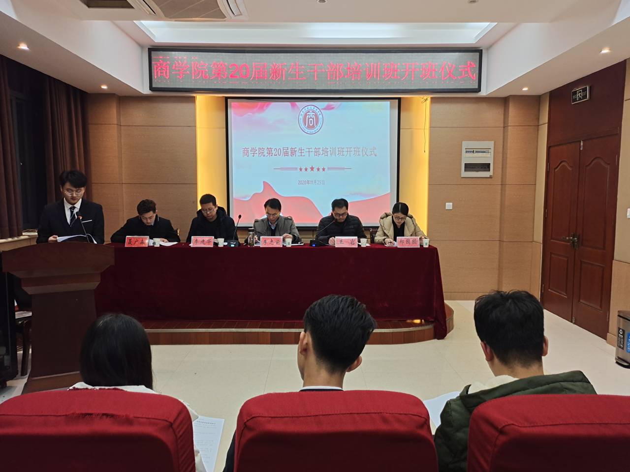 为引导同学们明确作为学生干部的责任和使命,加强学生干部思想引领,促进学生干部素质提升,11月25日晚,商学院第20届新生干部培训班开班仪式暨开班第一课在商学院119报告厅举行。商学院相关领导出席会议,学院2020级全体新生干部参会学习,会议由团委书记王岩主持。