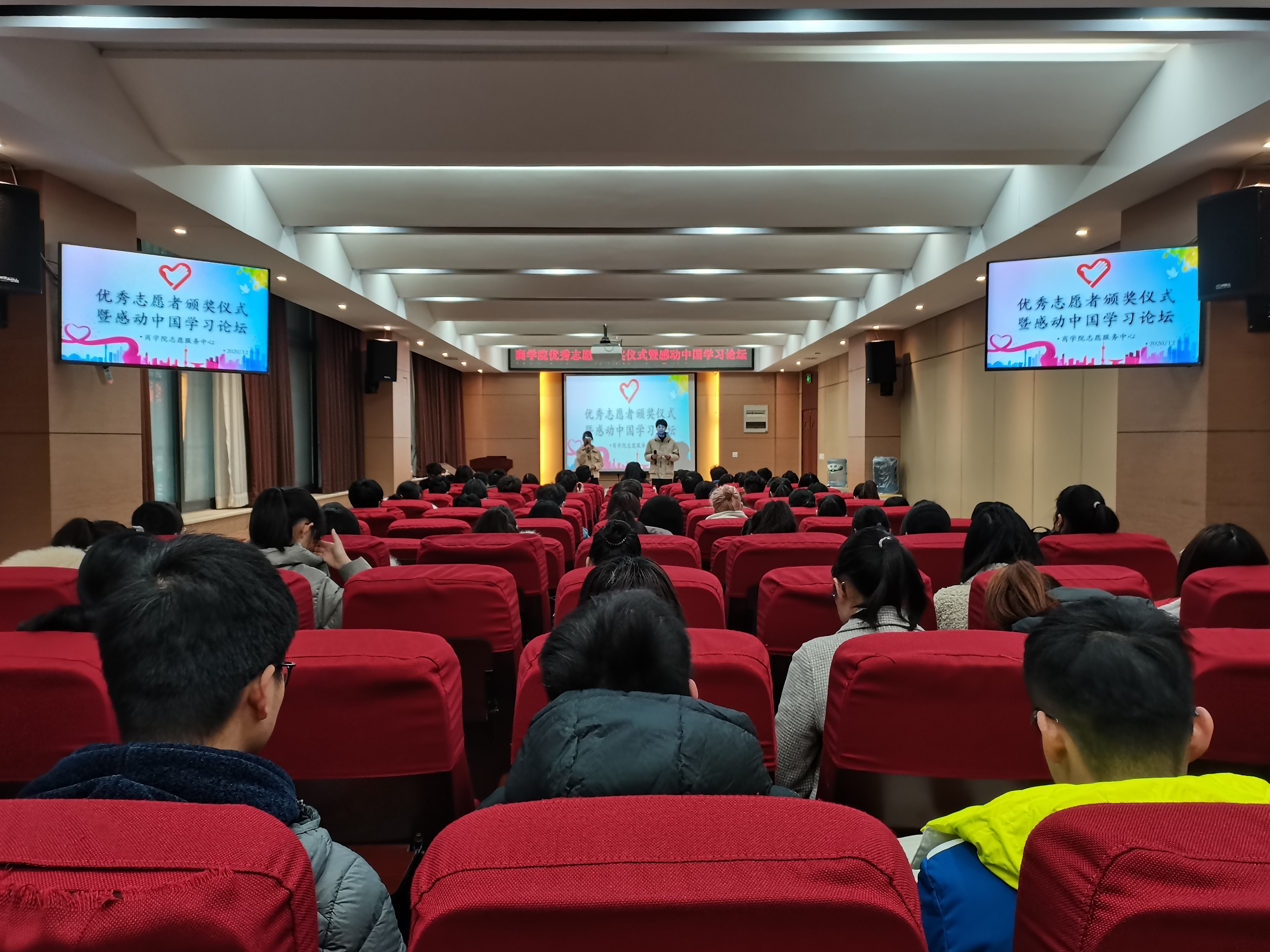 学习论坛上,与会学生共同观看“2019年度感动中国十大人物颁奖典礼”,学习感悟“敦煌女儿”樊锦诗、四川木里森林扑火勇士、人民科学家顾方舟等人的感人事迹。随后,进行了年度优秀志愿者表彰活动。其中,优秀志愿者代表李静发言,“在坚持公益的道路上一路成长一路感动,一定会珍惜当下,在志愿服务路上继续砥砺前行”。最后,商学院团委书记王岩进行活动总结。他表示,当代大学生应有理想、有责任、有担当,迎难而上勇往直前;应把握初心、付出诚心、奉献爱心,做新一代文明有为青年。他还指出,希望我院能够继续创新,打造精品志愿服务活动品牌,激励更多学生参与到志愿服务中。