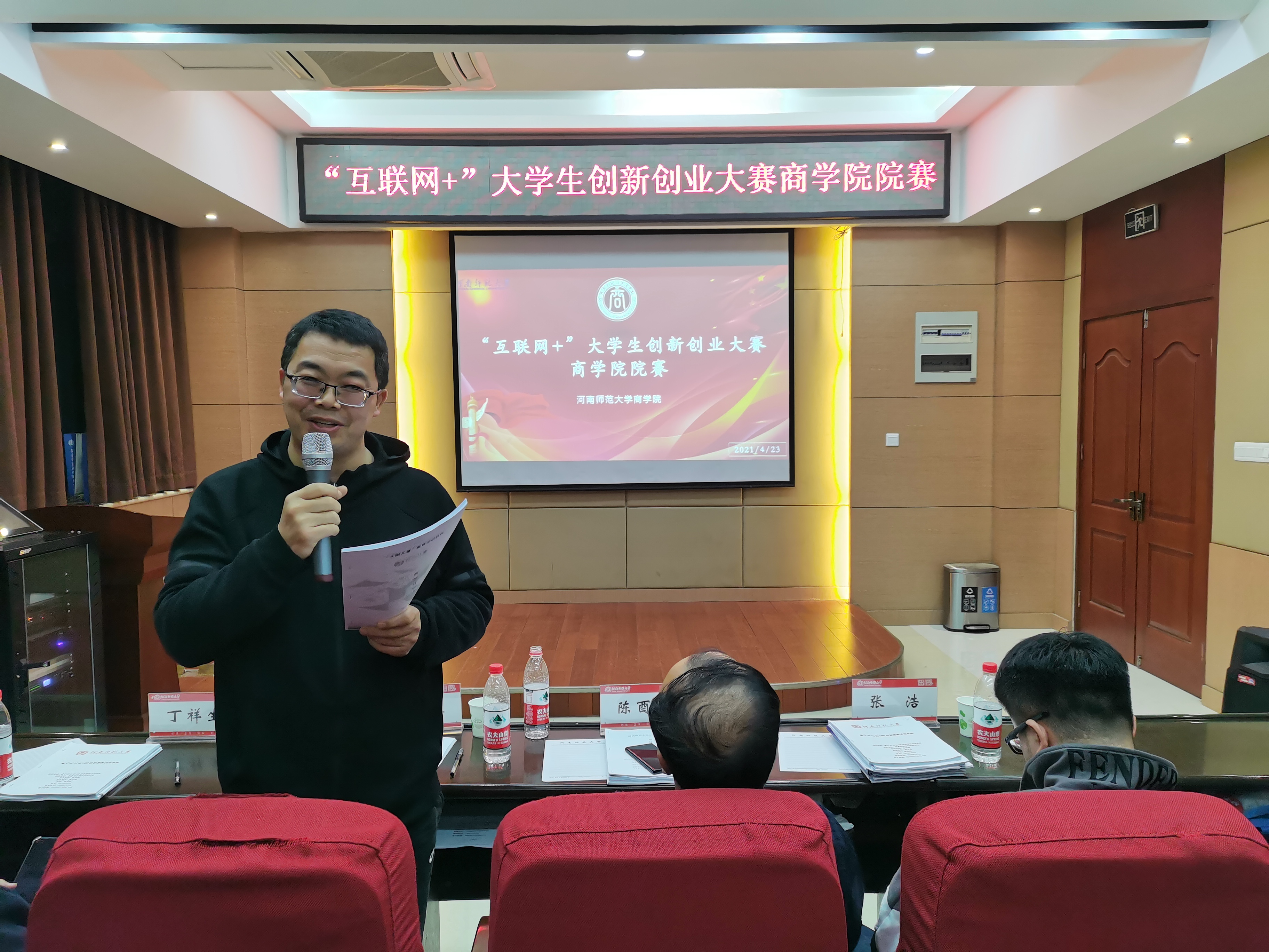 为加快培养创新型人才、助力创新强国建设,切实增强学生的创新精神、创业意识和综合能力,4月23日晚,商学院“互联网+”大学生创新创业大赛院赛于学院119报告厅成功举行。商学院副院长海本禄,优秀项目指导教师陈酉宜、丁祥生、张浩应邀出席并担任评委。学院相关负责人及百余名学生到场观看。