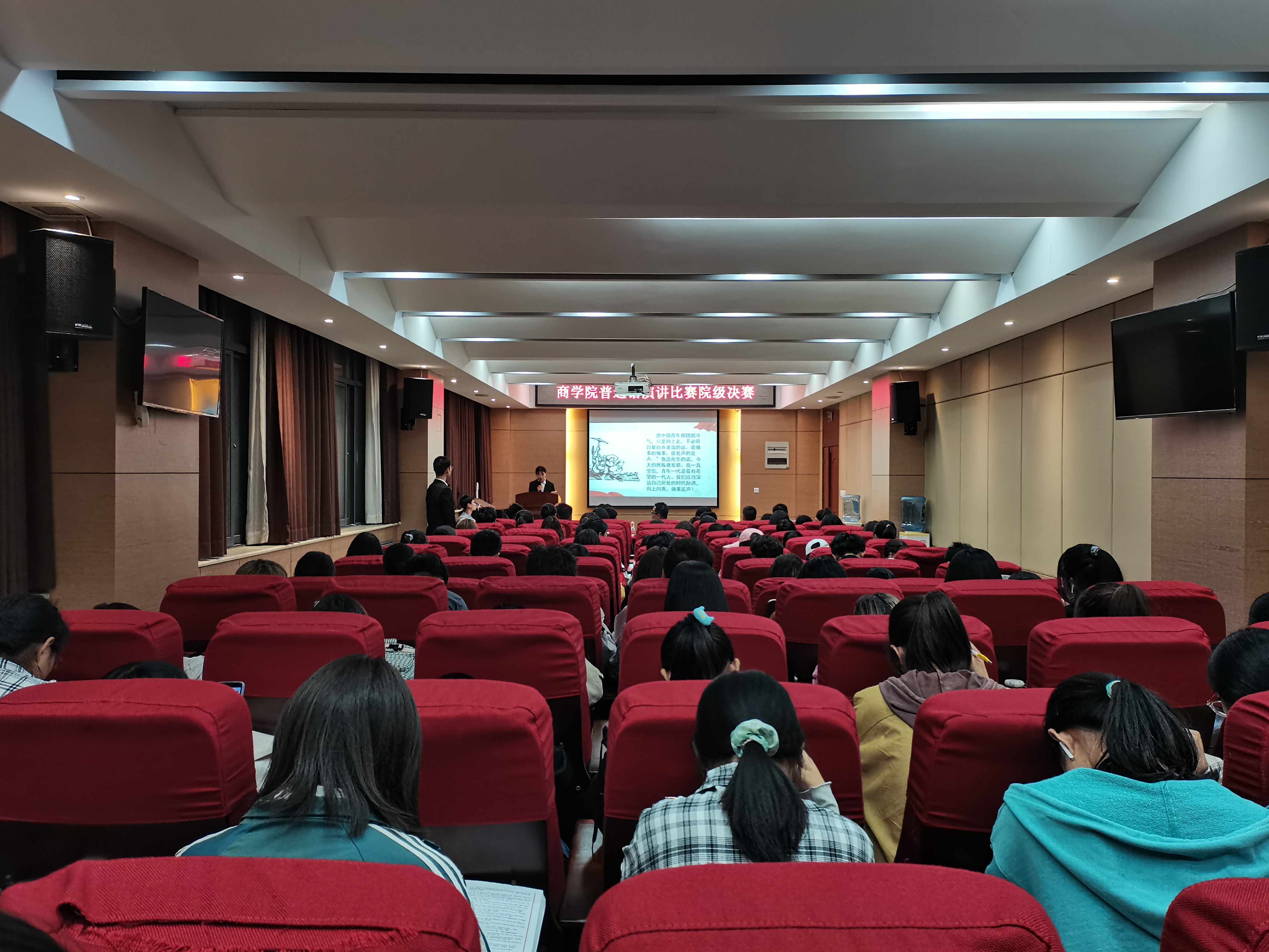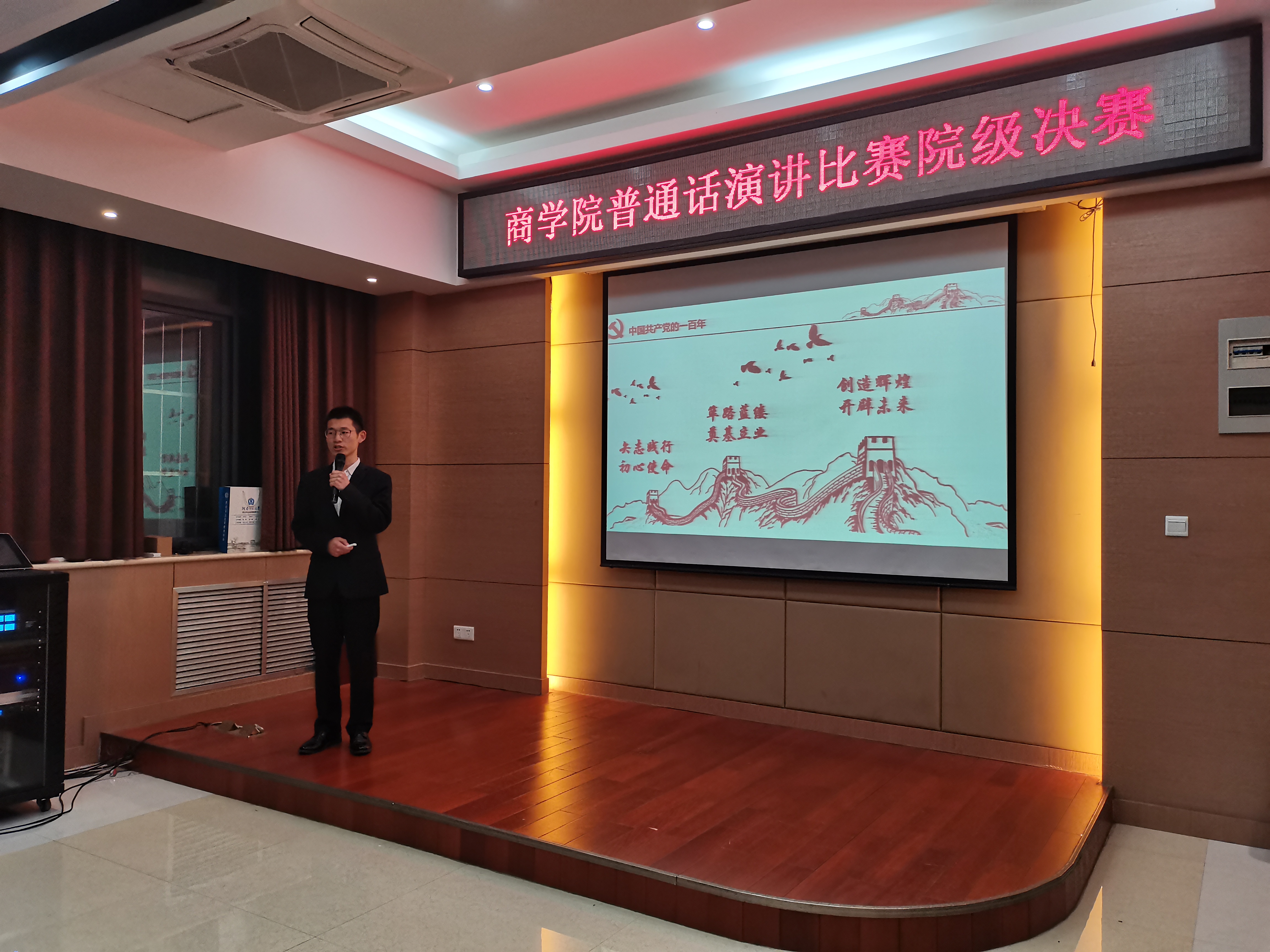 百年征程波澜壮阔,百年初心历久弥新。为庆祝中国共产党成立一百周年,贯彻落实习近平总书记在党史学习教育动员大会上的重要讲话精神,引导学生不断从党史中汲取奋斗力量,提升自身的基本技能,4月28日晚,商学院于119会议室举办普通话演讲比赛决赛。商学院团委书记王岩、2020级辅导员郑园园应邀出席,学院部分学生参加此次活动。