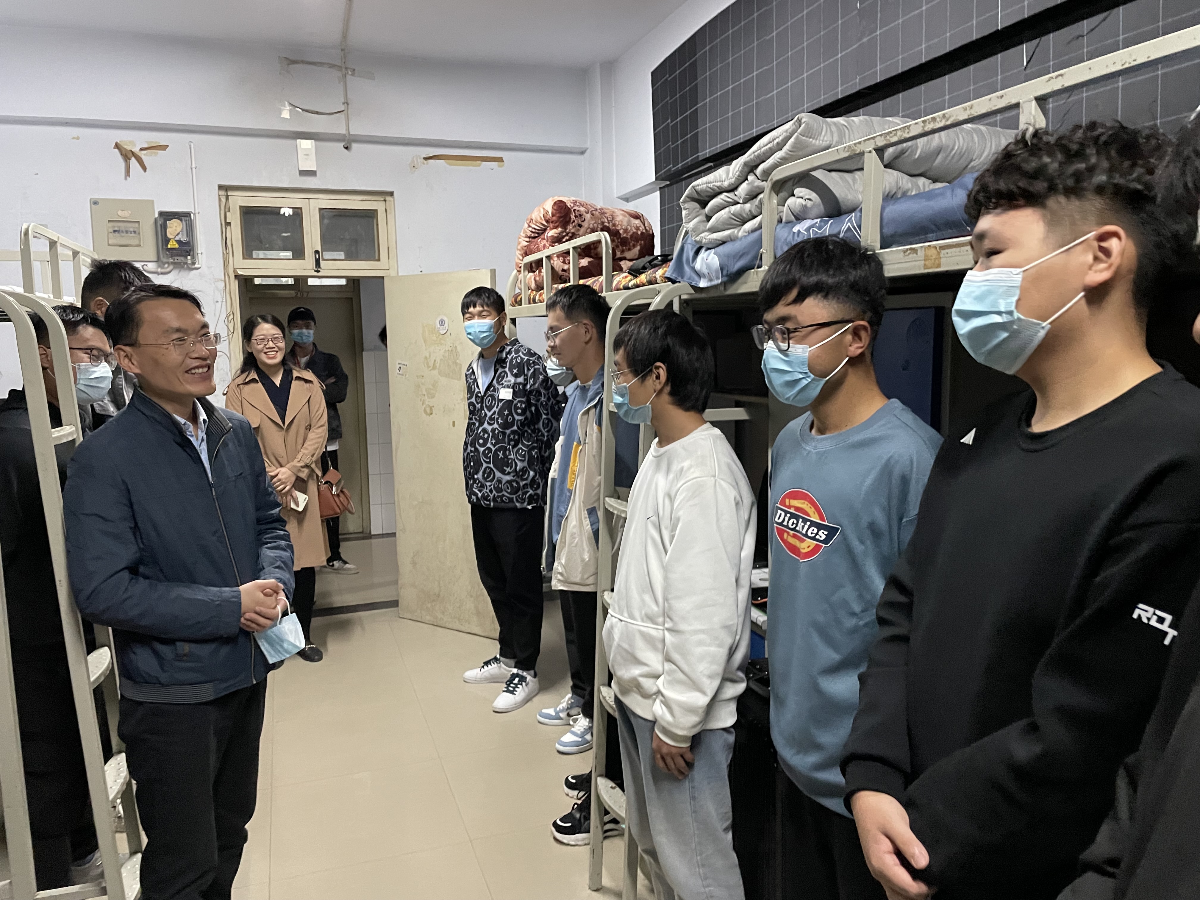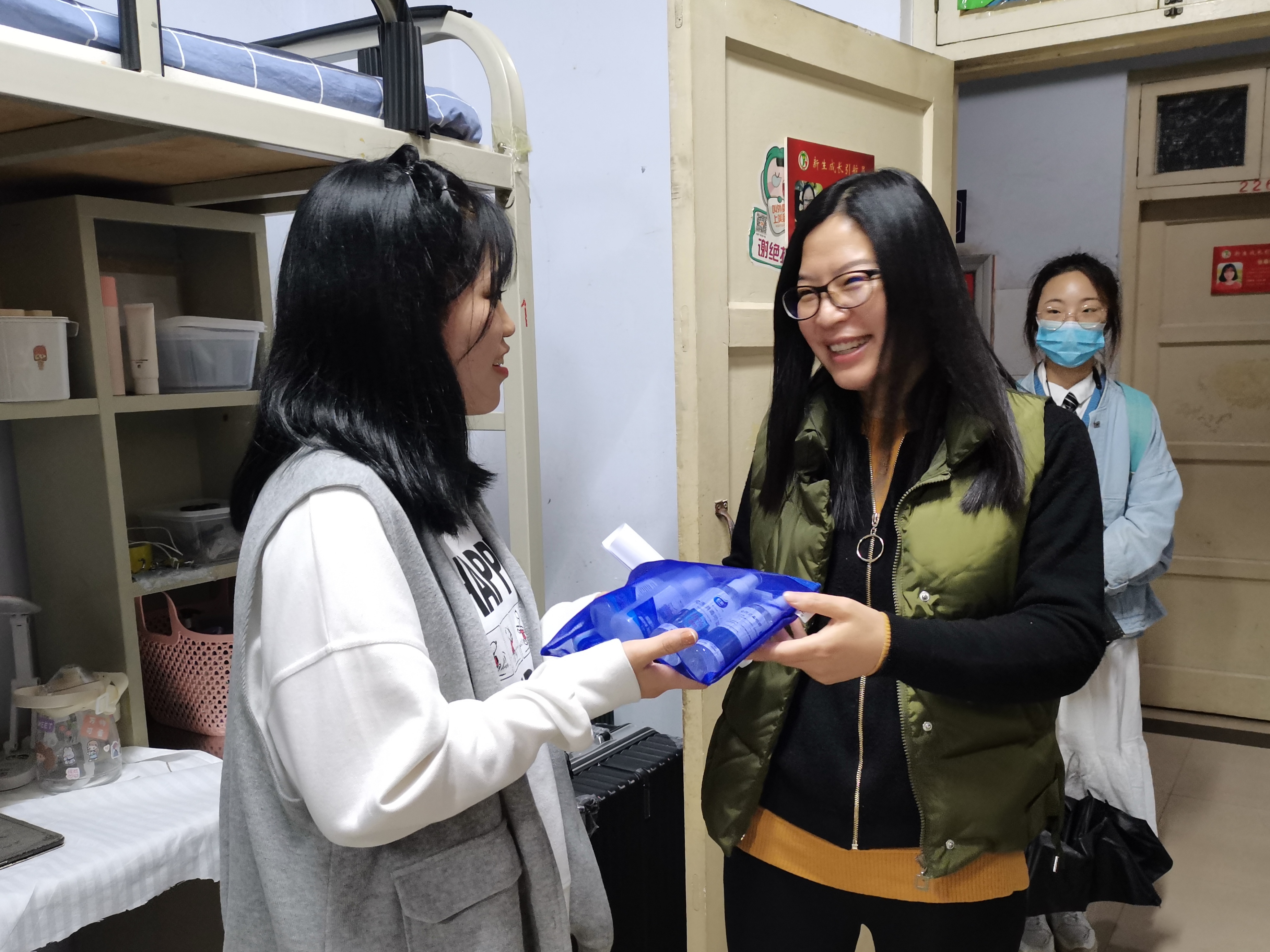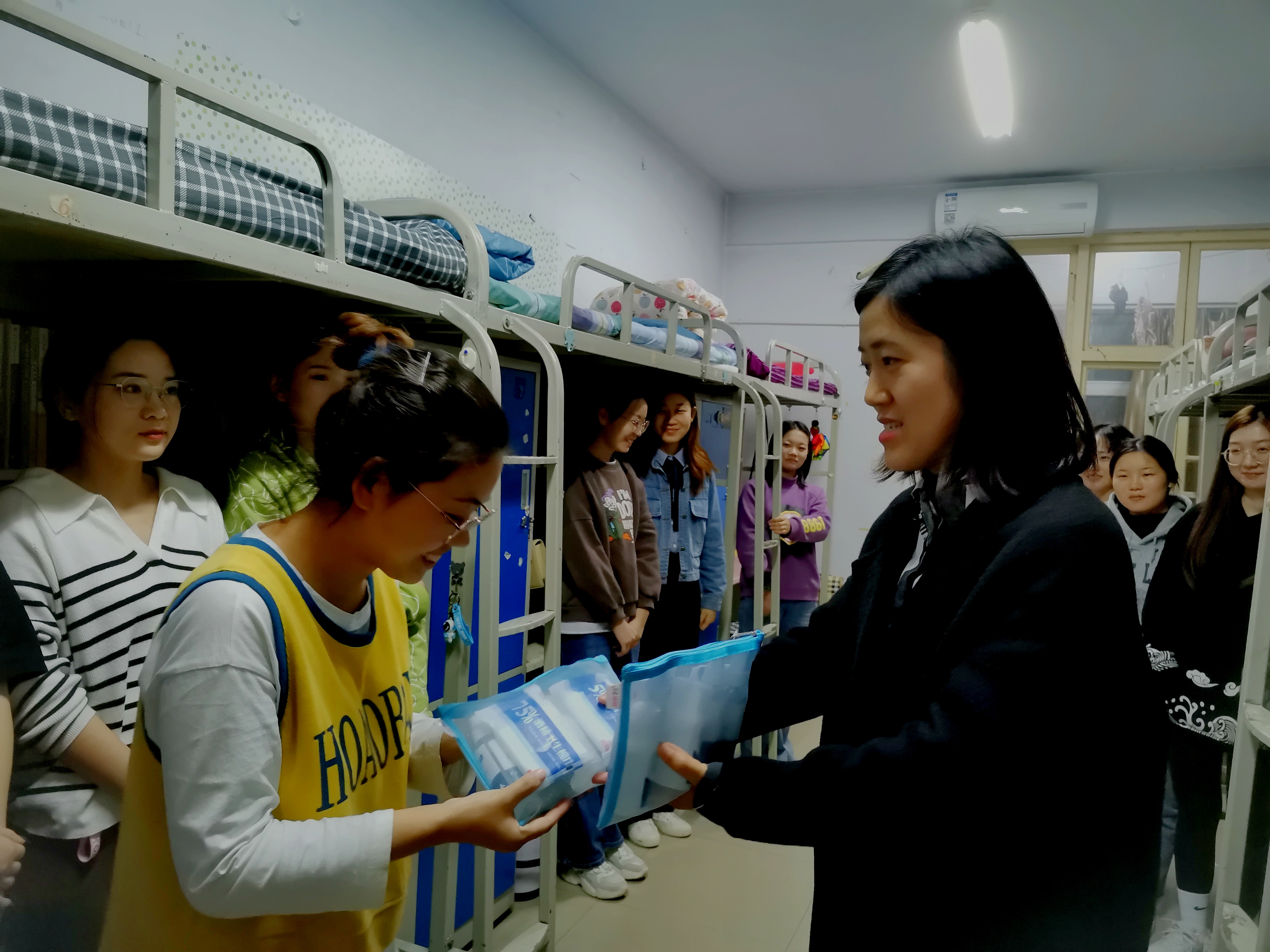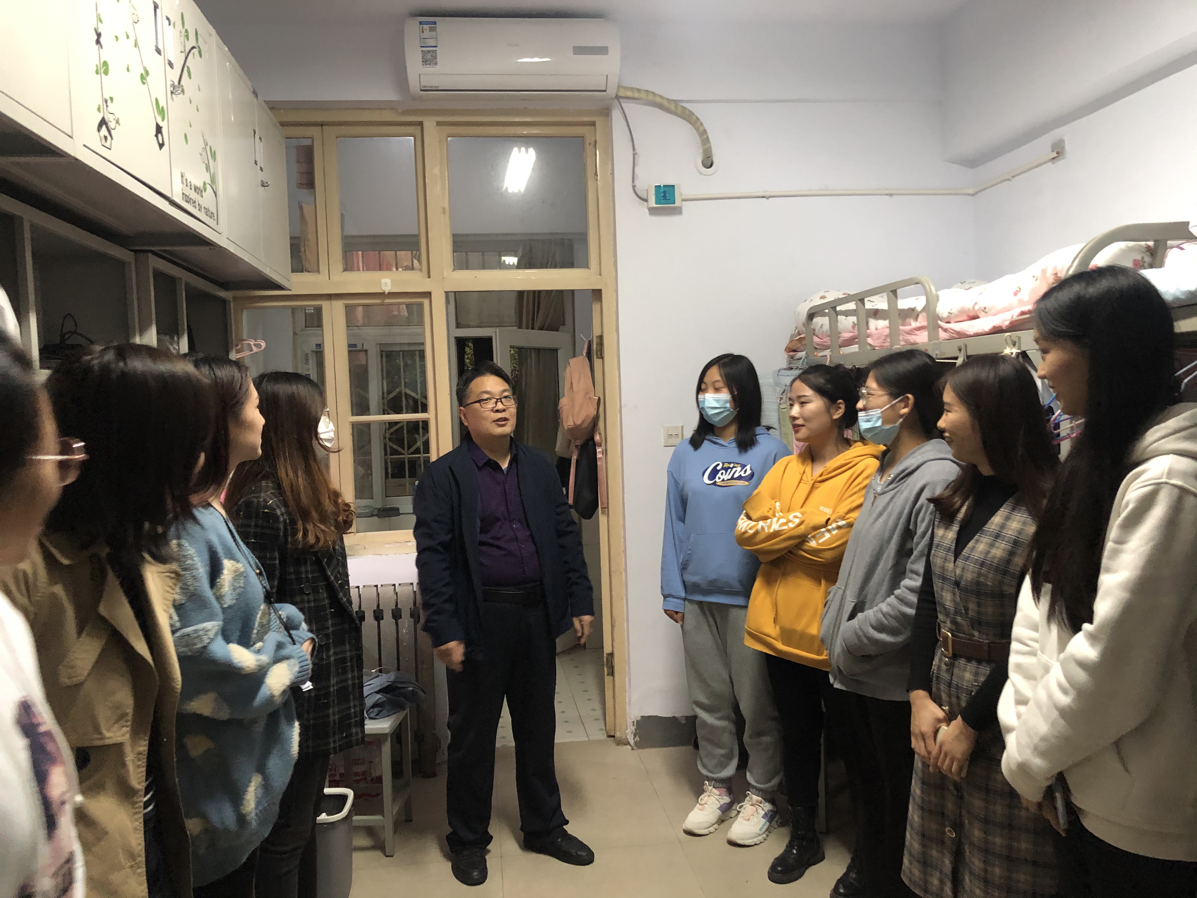 情系新生勤教导,深入宿舍暖人心。2021年10月11日晚,商学院党政领导、教师团队与年级辅导员分批次深入宿舍走访慰问2021级新生,关心学生入学情况,了解学生生活状态,为学生发放防疫物资。