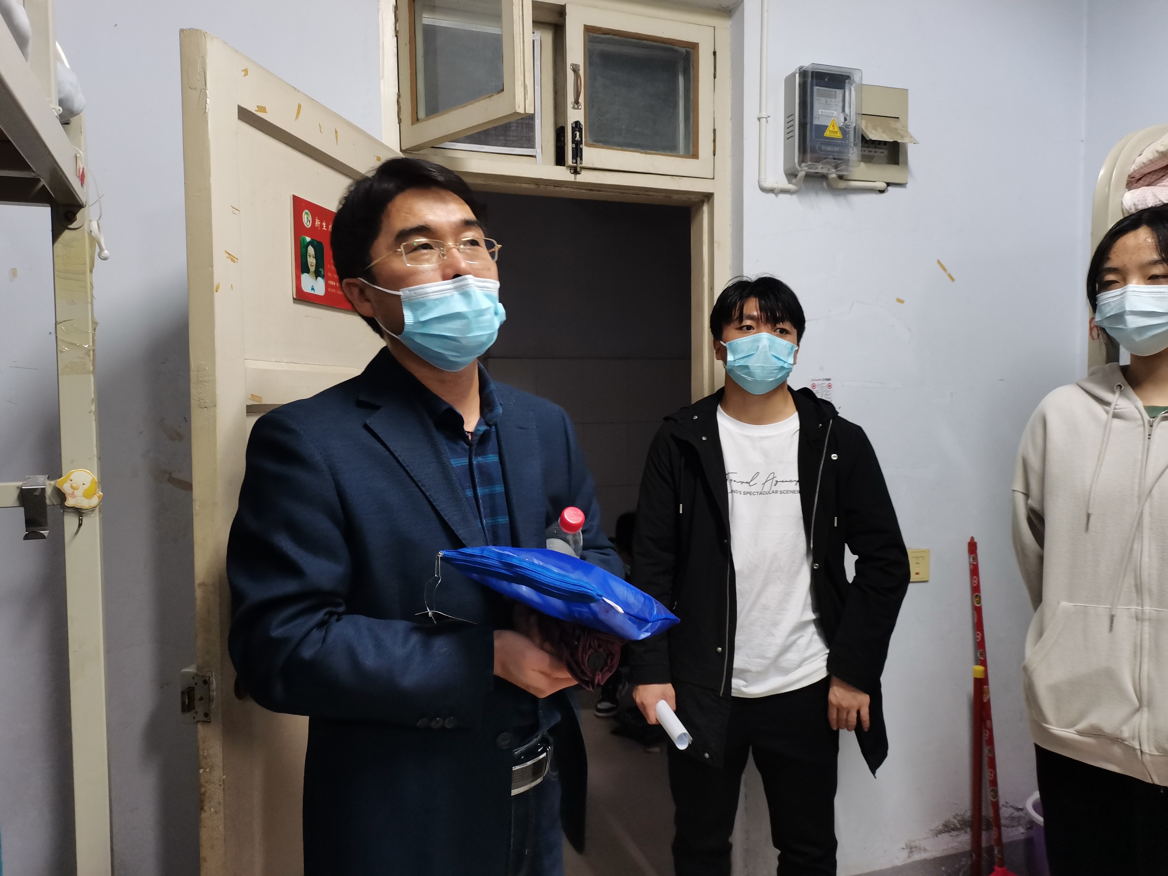 走访期间,我院党委书记李志前与新生们热情交流,仔细询问学生家乡、专业、返校情况,鼓励新生尽快融入班级、学院、学校大家庭,勉励青年要树立远大理想,抓住学习机会,不断利用师大资源充实、完善自我;院党委副书记马淑明就考研深造和专业学习等问题,引导专升本学生珍惜时光、勤奋学习;副院长陈清利提醒新生谨防电信网络诈骗,保管好个人财产;副院长李荣华就新生的专业学习给出了几点建议,鼓励学生博学而精专;副院长王喜刚勉励研究生新生夯实学习基础、深耕学术研究。此外,一行人还向学生送去消毒湿巾、酒精喷雾等防疫物资,提醒学生注意疫情防护,以健康体魄迎接大学新生活。