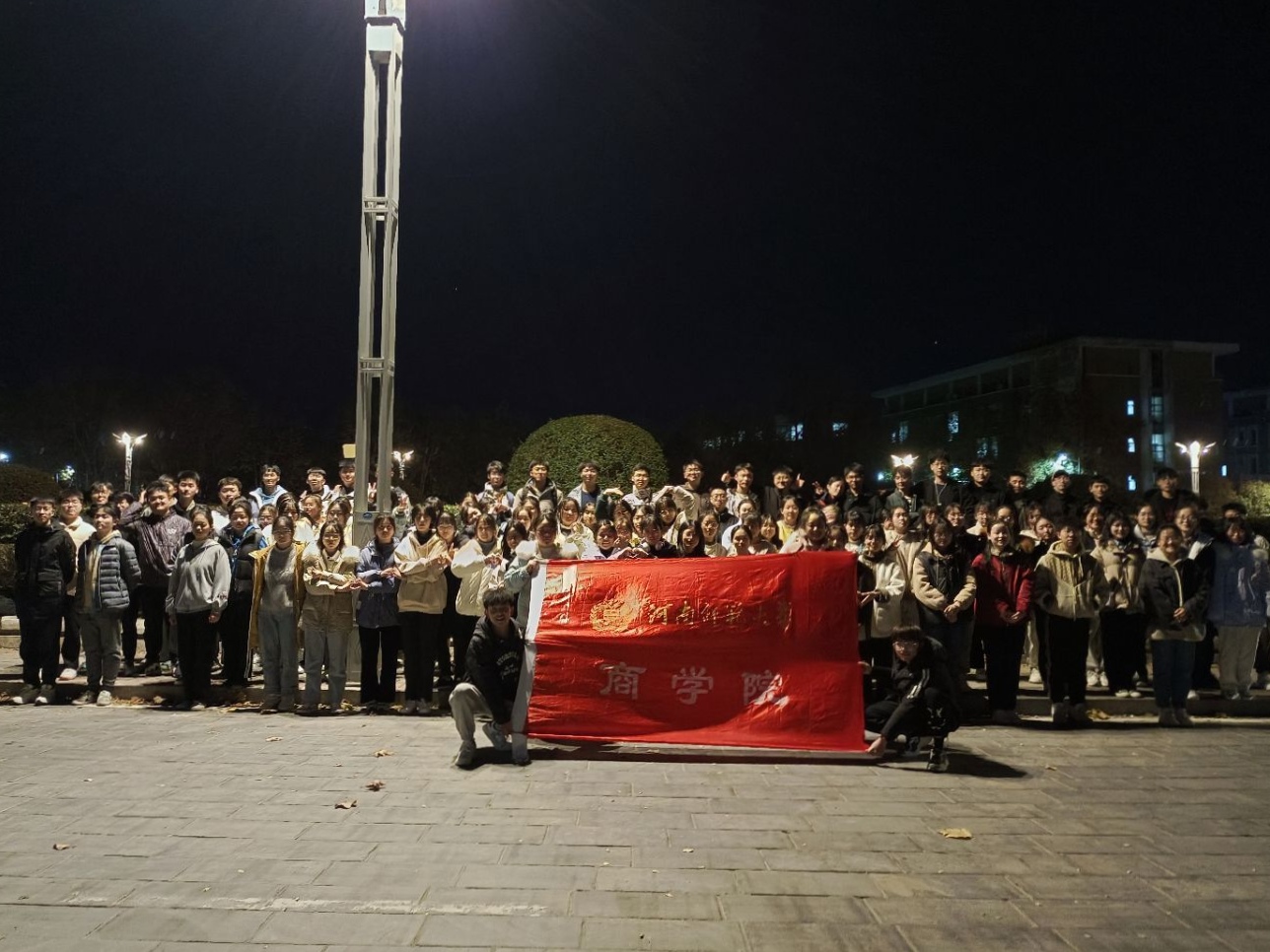 为了加强新生干部队伍建设,提高新生干部身体素质,磨炼新生干部意志,11月22日到12月2日,商学院于东区花坛组织新生干事培训班开展“强其身体,励其志气”夜间跑操活动,全体新生干部参与其中。