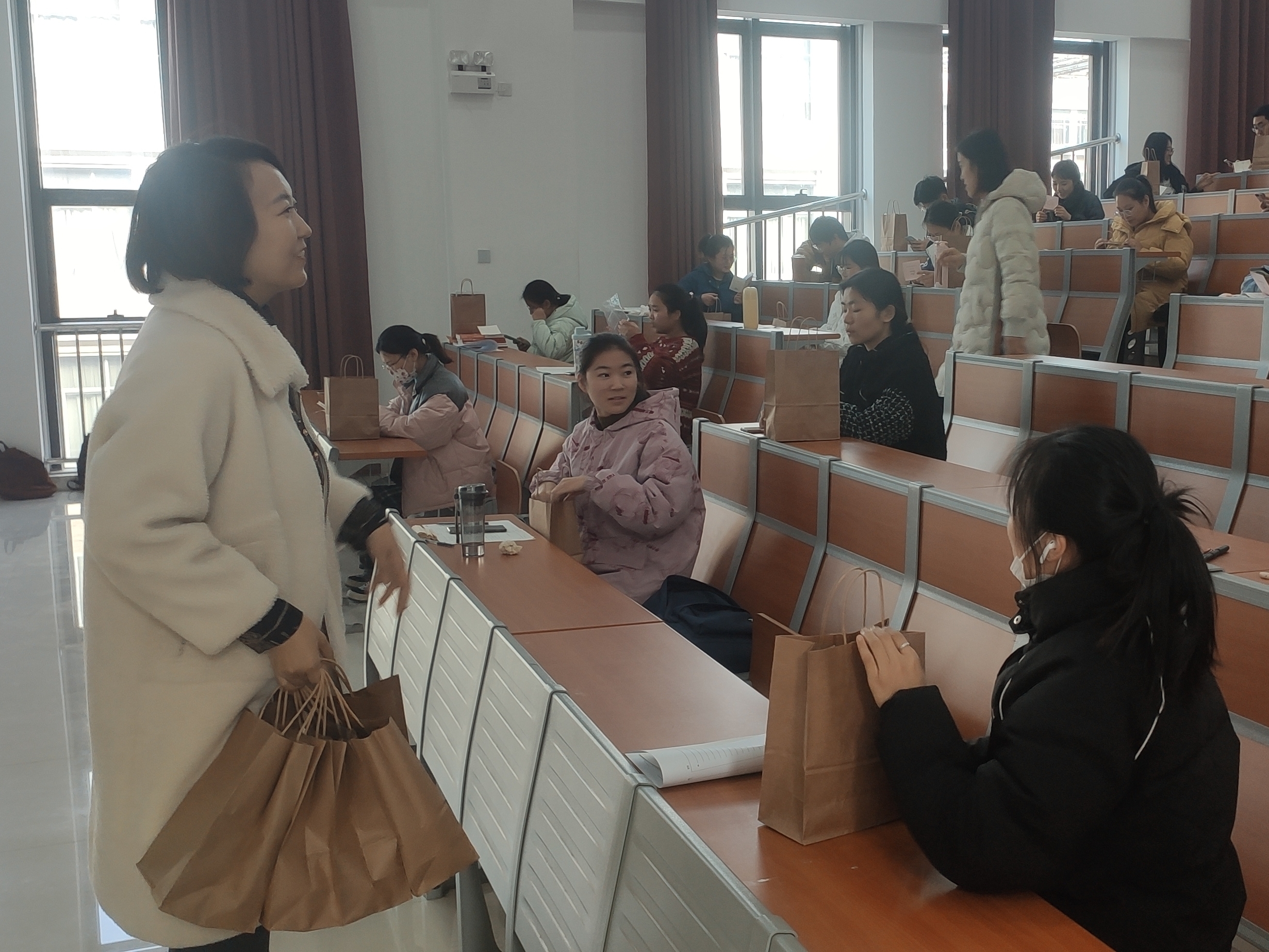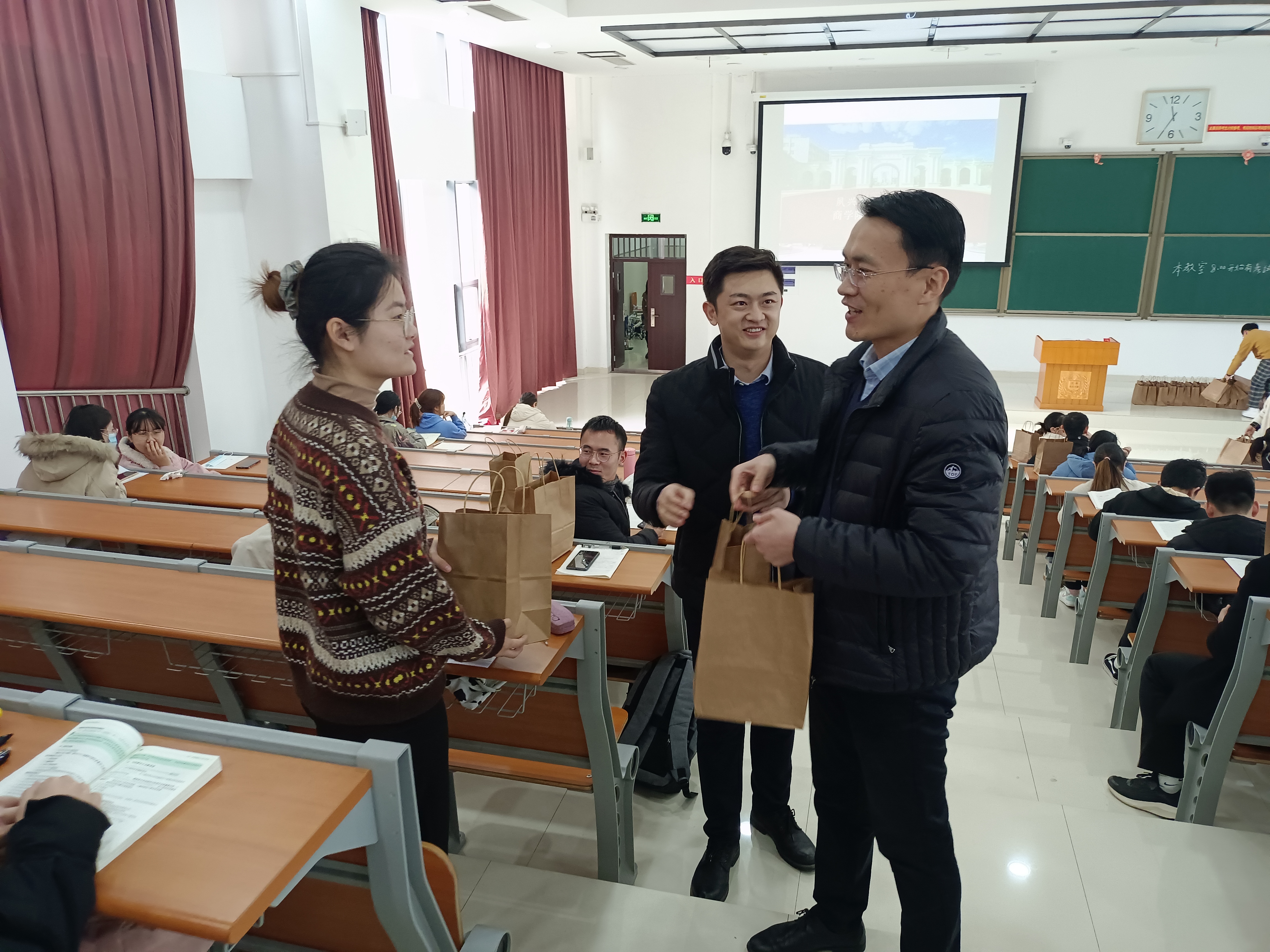 首先,李志前叮嘱学生要放平心态、放松心情,在保证休息时间的基础上扎实推进备考计划,以饱满的状态、沉稳的心态、必胜的信心,迎接人生中的一次大考。随后,杨玉珍提醒同学们要有计划地安排剩余时间,把握好冲刺阶段的复习方向,从容应对考研征程上的“最后一公里”,并预祝各位学子金榜题名。最后,学院各位领导老师将学院精心准备的“考研必胜大礼包”送至每一位考生手中,老师们的鼓励与祝福在寒冬里为大家心中增添了一团暖意,同学们纷纷表示要牢记叮嘱,全力备考,用最好的成绩回报自己的努力、回馈母校的栽培。