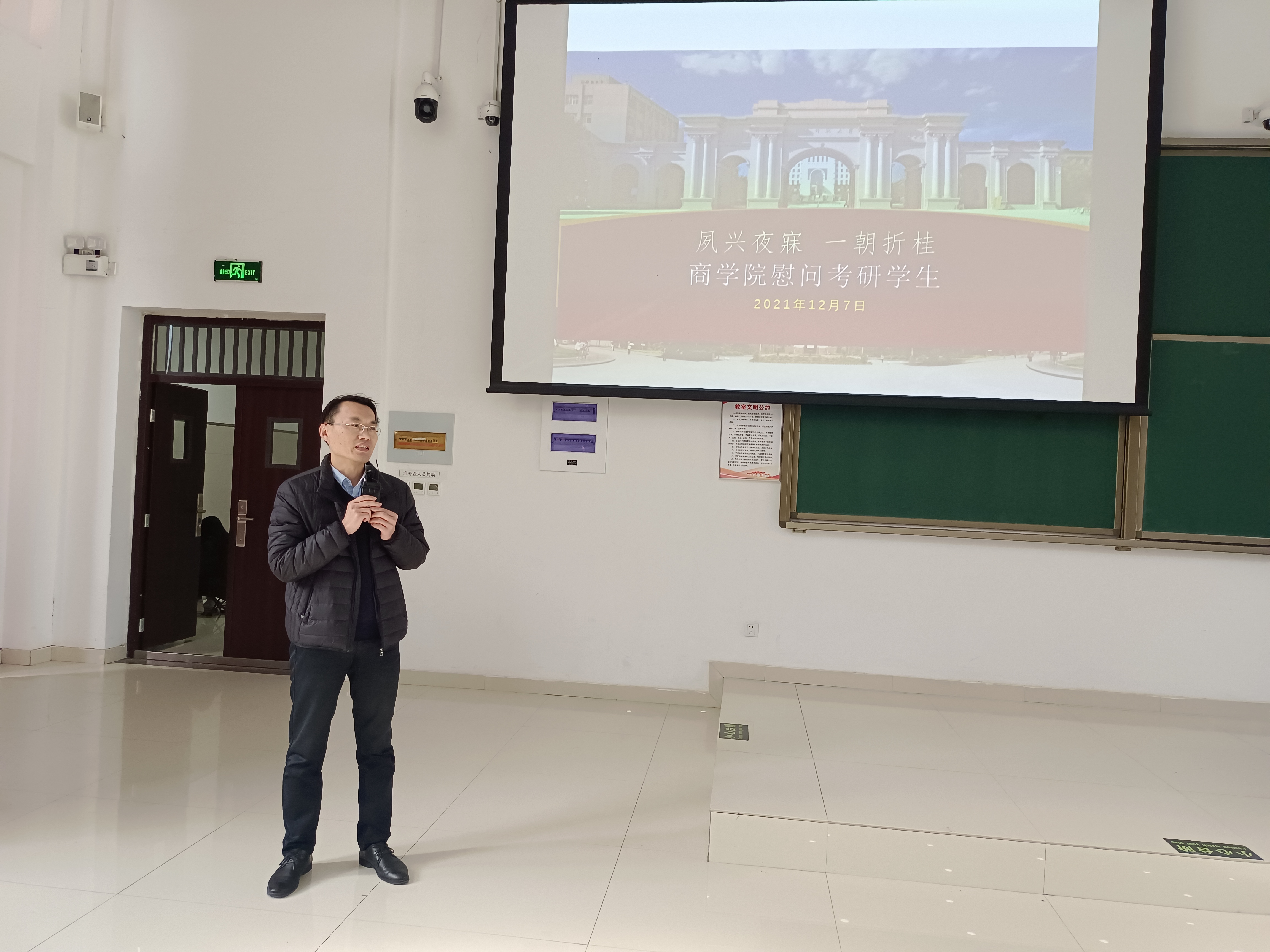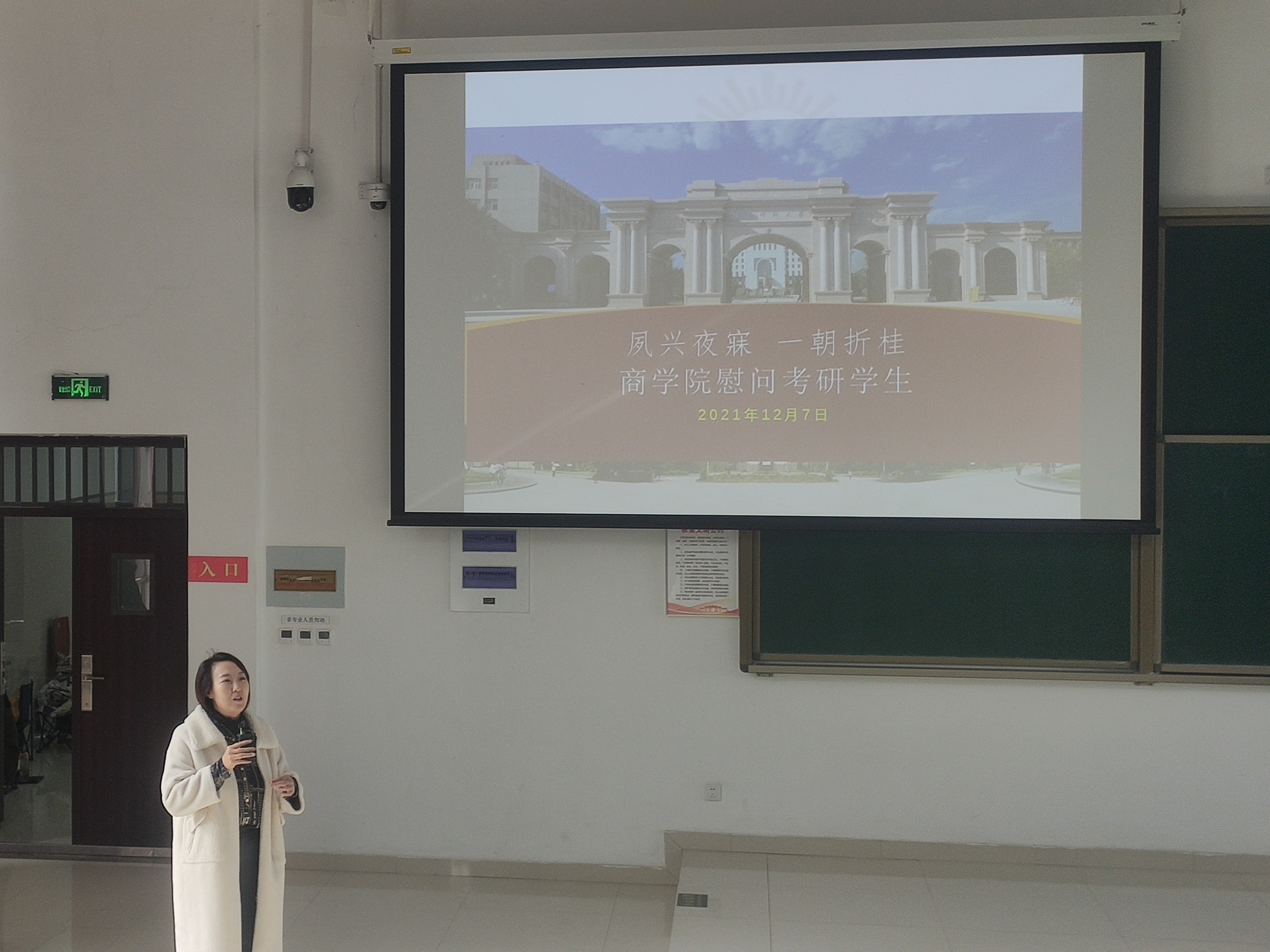 心系研途学子,寒冬传递温情。为振奋我院考研学子士气,增强学生备考信心,12月7日,学院于文昌楼327教室开展“关怀慰问考研学子”活动。商学院党委书记李志前、院长杨玉珍和党委副书记马淑明一同为学院考研学生送上了温情关怀、殷切期盼和美好祝福。