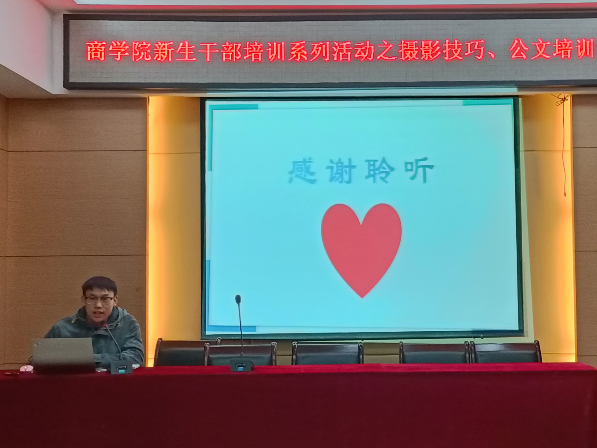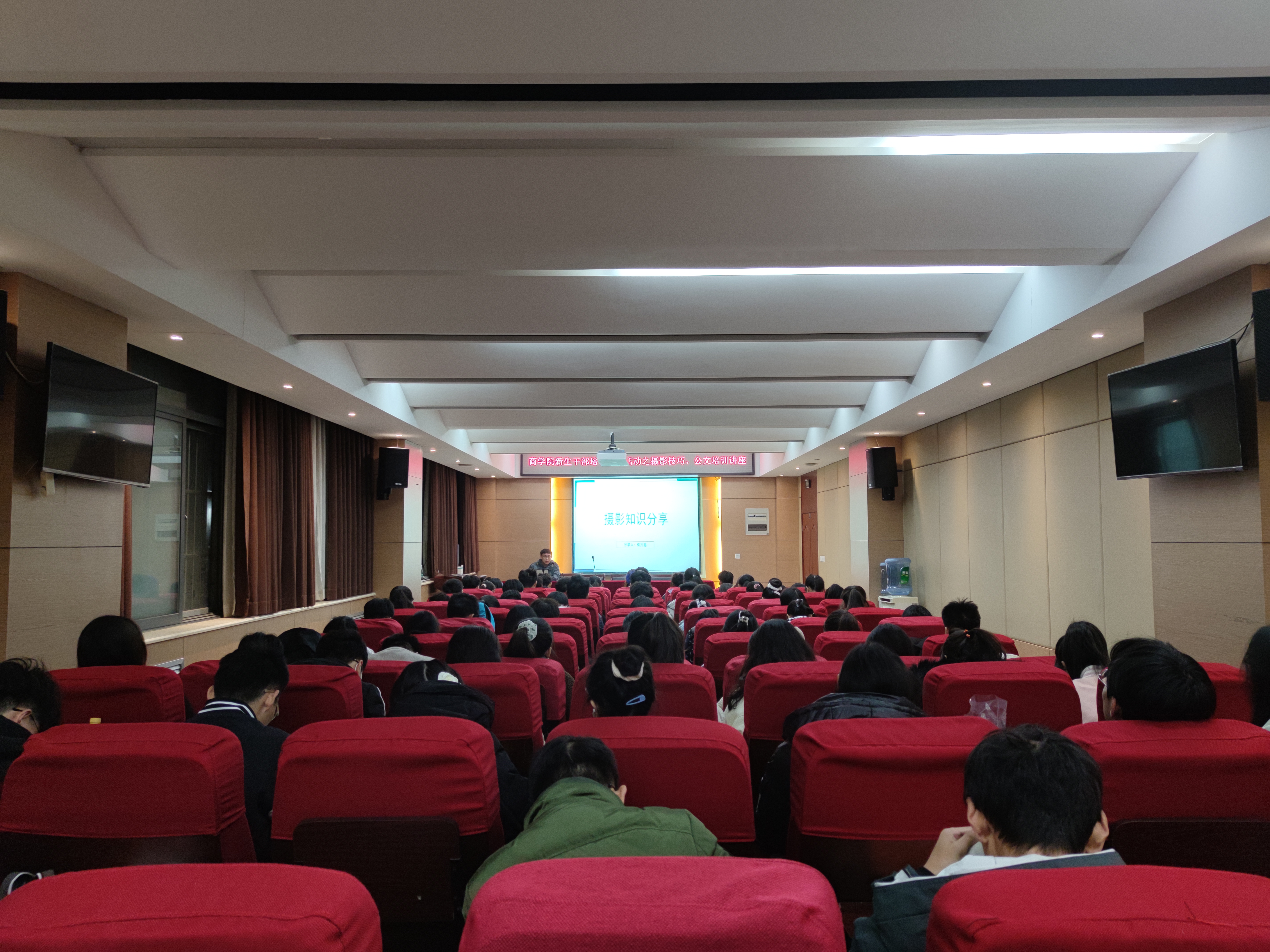 为进一步培养新生干部在今后工作中所必备的能力和素质,提升其摄影技能和公文撰写技能。12月8日晚,商学院于119报告厅举办新生干部培训系列活动之摄影技巧与公文培训讲座。相关负责人及2021全体新生干部参加此次讲座。