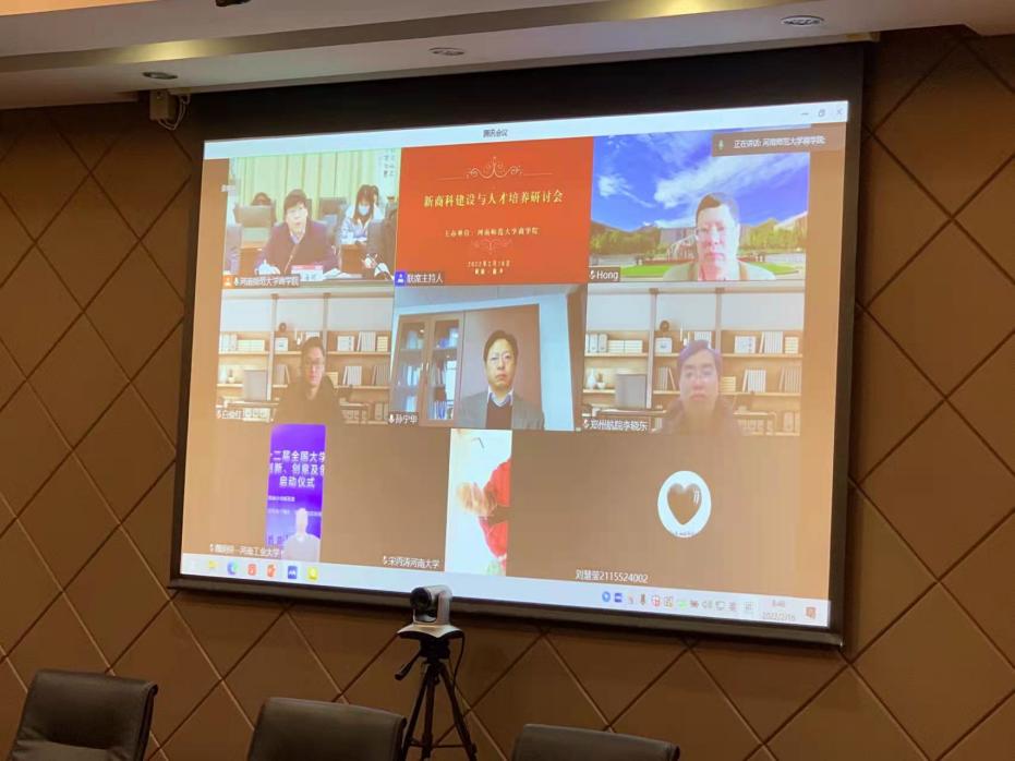 2月16日上午,由伟德官网下载苹果版商学院主办的“新商科建设与人才培养”主题研讨会在勤政楼第三会议室隆重举行,研讨会同时通过“腾讯会议”在线上进行。此次研讨会分为“新商科建设与人才培养特邀主题报告”和“人才培养创新与培养方案修订讨论会”两个阶段。来自中国人民大学、中国科学院大学、南京大学、北京师范大学、南京师范大学、河南大学等省内外九所高校的十多位专家学者参加研讨会并作了主题报告和发言。河南省教育厅高等教育处处长张水潮,伟德官网下载苹果版党委、常委副校长郭海明,伟德官网下载苹果版教务处处长聂国兴,伟德官网下载苹果版商学院师生以及省内相关高校的经管学院师生参加了此次研讨。