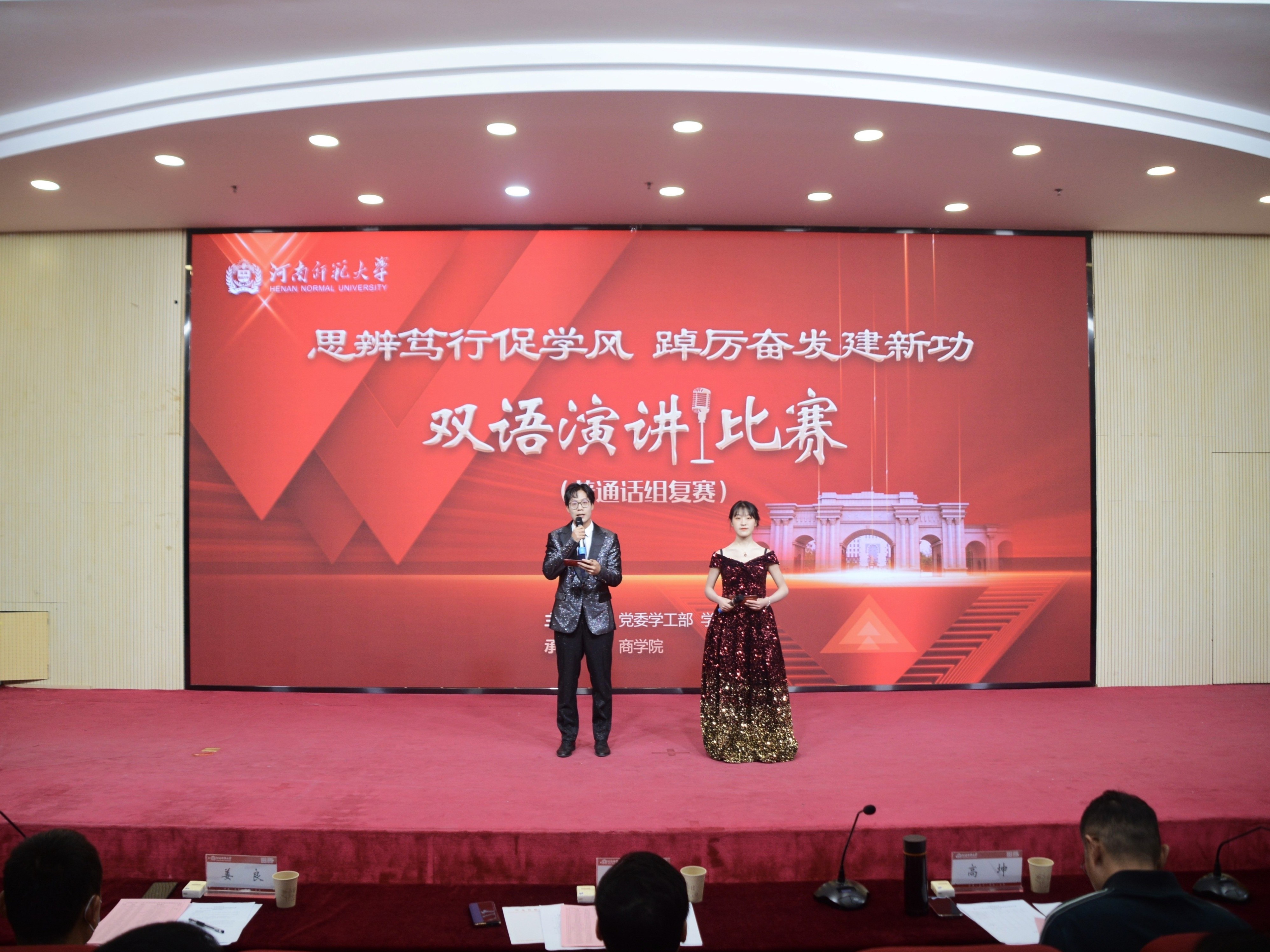 为提高人才培养质量,推进学风建设,营造乐学善学、求实奋进、勇攀高峰的良好氛围,5月8日,由党委学工部、学生处主办,我院承办的伟德官网下载苹果版第二十九届大学生基本技能大赛之普通话演讲比赛复赛于思政平台举行。校学生资助服务中心主任赵红杰,数学与信息科学学院党委书记、国家级普通话水平测试员姜良,国家级普通话水平测试员、河南省演讲与口才协会理事高坤,校语言文字工作委员会副主任程丽,校党委宣传部副部长冀虹飞受邀莅临本次活动并担任评委。校党委学工部、学生处、商学院相关负责人,各学院党委副书记、团委书记、辅导员和学生代表现场观摩比赛。