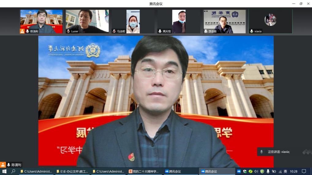 活动中,学院党委书记李志前以党的二十大报告要点为主线,重点对党的二十大精神的丰富内涵和核心要义等方面进行了详细解读,并结合青年学生实际,对报告中关于青年和青年工作的论述进行了深入浅出的解读,引导学生深入学习党的二十大精神,从党史中汲取奋进力量,让青春在全面建设社会主义现代化国家国家的火热实践中绽放绚丽之花。