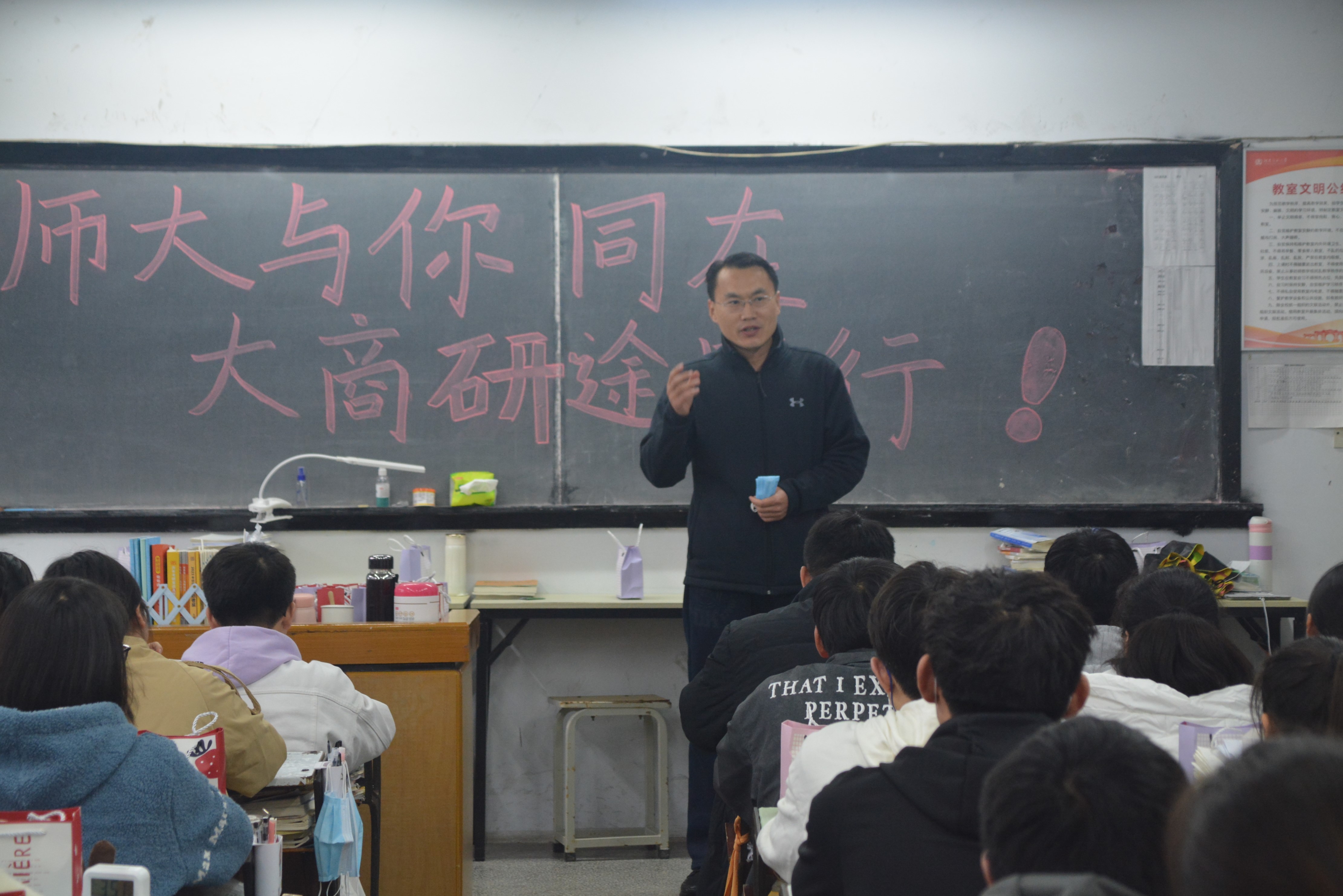 为帮助考研学子缓解备考压力,增强学生考研信心,鼓舞学生考研士气,11月18日下午,商学院于文渊楼540教室开展慰问考研学子活动。商学院党委书记李志前、党委副书记马淑明、团委书记王岩和2022级辅导员聂广森一同为学院考研学子送去温暖关怀和美好祝福。