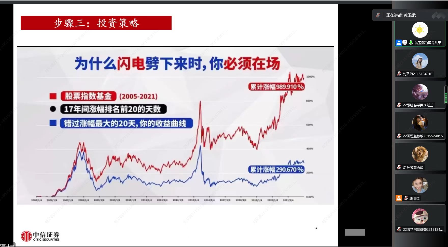 此次活动包括“讲师发言”和“在线答疑”两个环节。在“讲师发言”环节中,中信证券从业人员黄玉娜以“如何挑选一只基金”为切入点,分别围绕“基金投资要注意目标”“选基”“策略”三个方面的内容展开叙述,详细讲解了制定投资目标、筛选适配好基和制定投资策略应该注意的问题和掌握的技巧。其中,对于第三个步骤“投资策略”,黄玉娜特别强调了做好资产配置的重要性,在重申“鸡蛋不要放进同一个篮子里”的投资经验同时,进一步提出“所有的篮子也不要放在同一辆车上”的道理,并据此讲明了基金的投资要注意所属企业上下游产业关系和资本市场的总体环境等影响因素。黄玉娜关于基金投资的讲解专业透彻,与会同学受益匪浅。在“在线答疑”环节中,同学们踊跃发言,黄玉娜就同学们提出的问题给出个人的见解与建议,活动现场氛围热烈。
