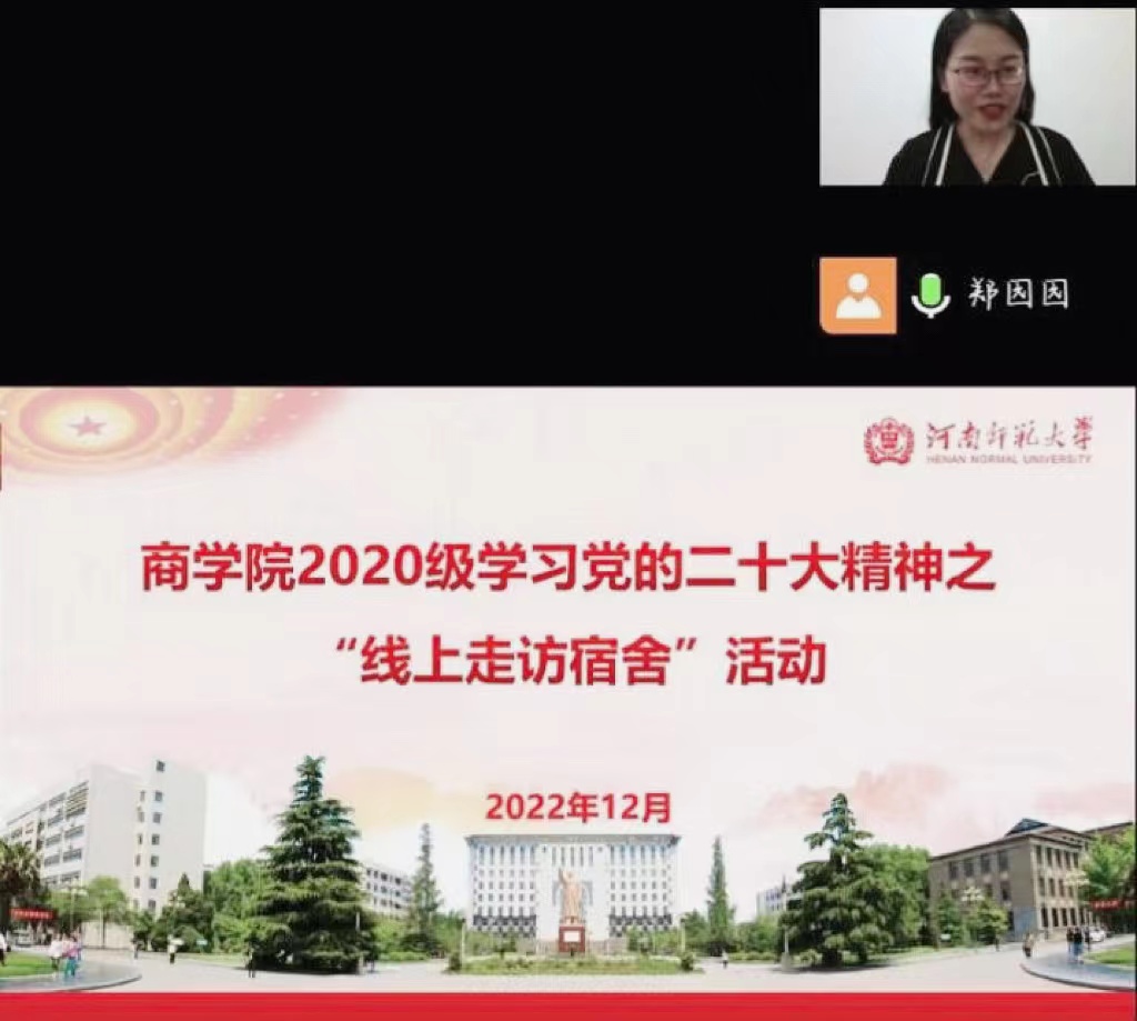11月29日至12月4日,在商学院党委统一安排和各年级的精心组织下,商学院学习宣传贯彻党的二十大精神“十个一”活动之“开展一次走访宿舍活动”陆续开展。学院80余名党员教师通过线上线下相结合的方式走访学生宿舍,关心慰问学生。