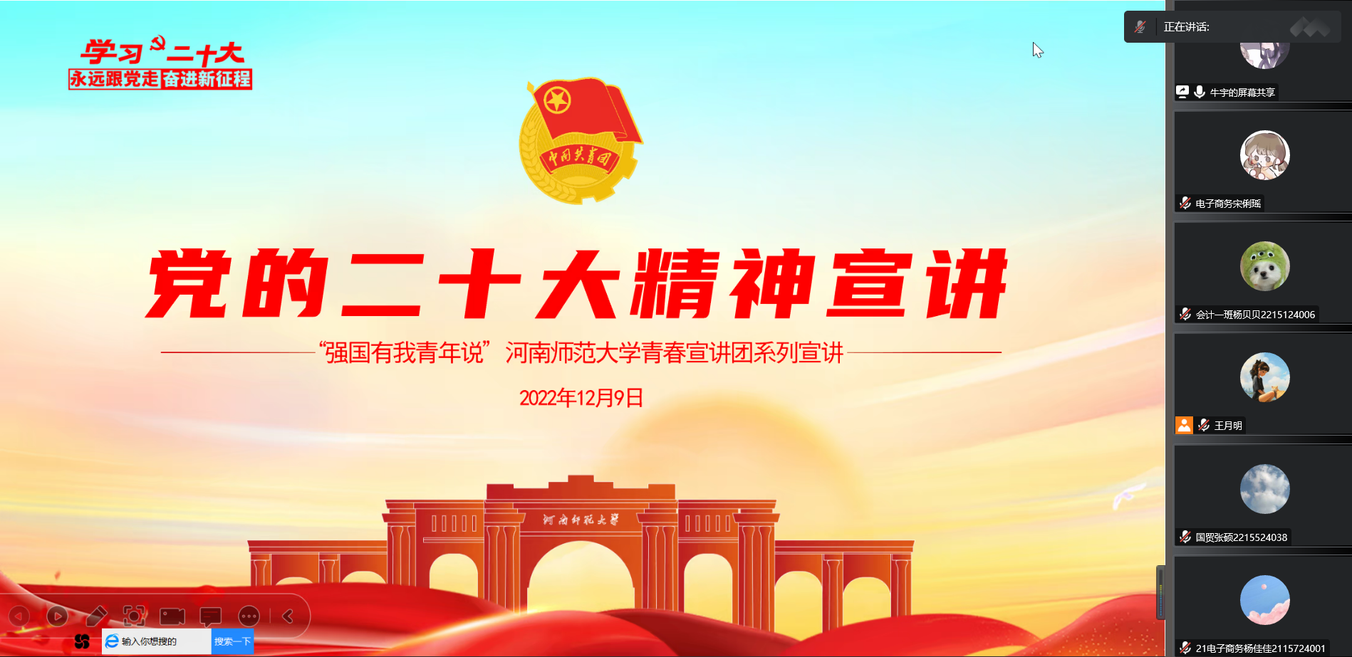 为深入学习宣传贯彻党的二十大精神,响应习近平总书记对青年的伟大号召,引领学生学精神、悟思想、担使命,12月9日晚,伟德官网下载苹果版“青春有理想”宣讲小分队走进商学院,以青年青音宣讲党的故事,传递党的精神,学院学生于线上观看此次宣讲会。
