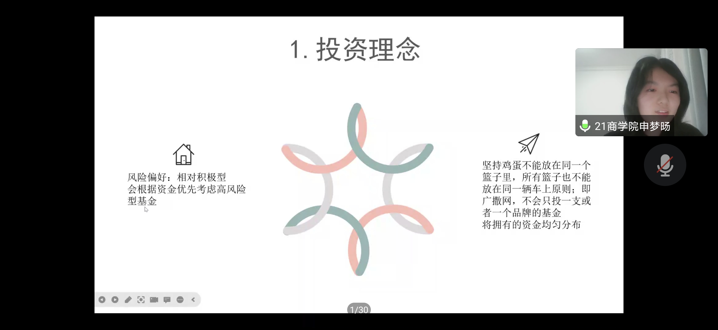在活动结束之际,学生代表刘凯隆在投资策略中分享“主动出击”“不要盲从”“冷静思考”“要有耐心”四项原则,提出作为投资者要时刻保持着理性从容、积极乐观的心态;经济贸易协会指导老师张广根对本次活动进行总结,希望同学们以学促思、以思促进,树立正确的投资理念和风险意识,做到知行合一;雷永鹏对本次活动顺利举行致以热烈的祝贺,并期望同学们通过本次活动了解基金知识、把握学习机会、做好人生规划,为今后真正踏入社会打好结实的基础。