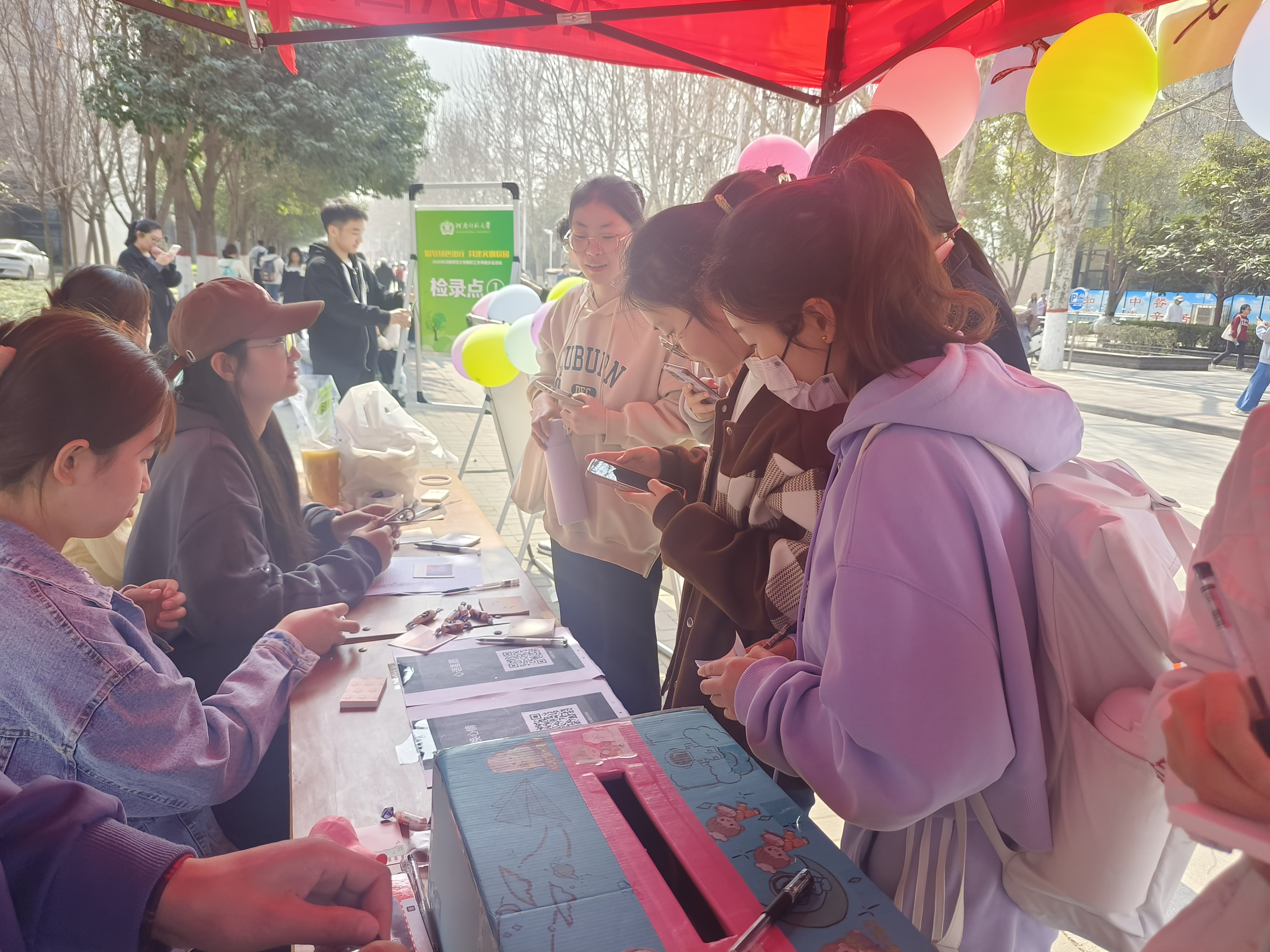 融融春光日,花漾女生节。为丰富校园文化生活,彰显新时代“她”风采,3月7日,商学院于东区餐厅前举办“芳华悦己,向美而生”女生节活动,学院学生踊跃参与,尽显青春活力。