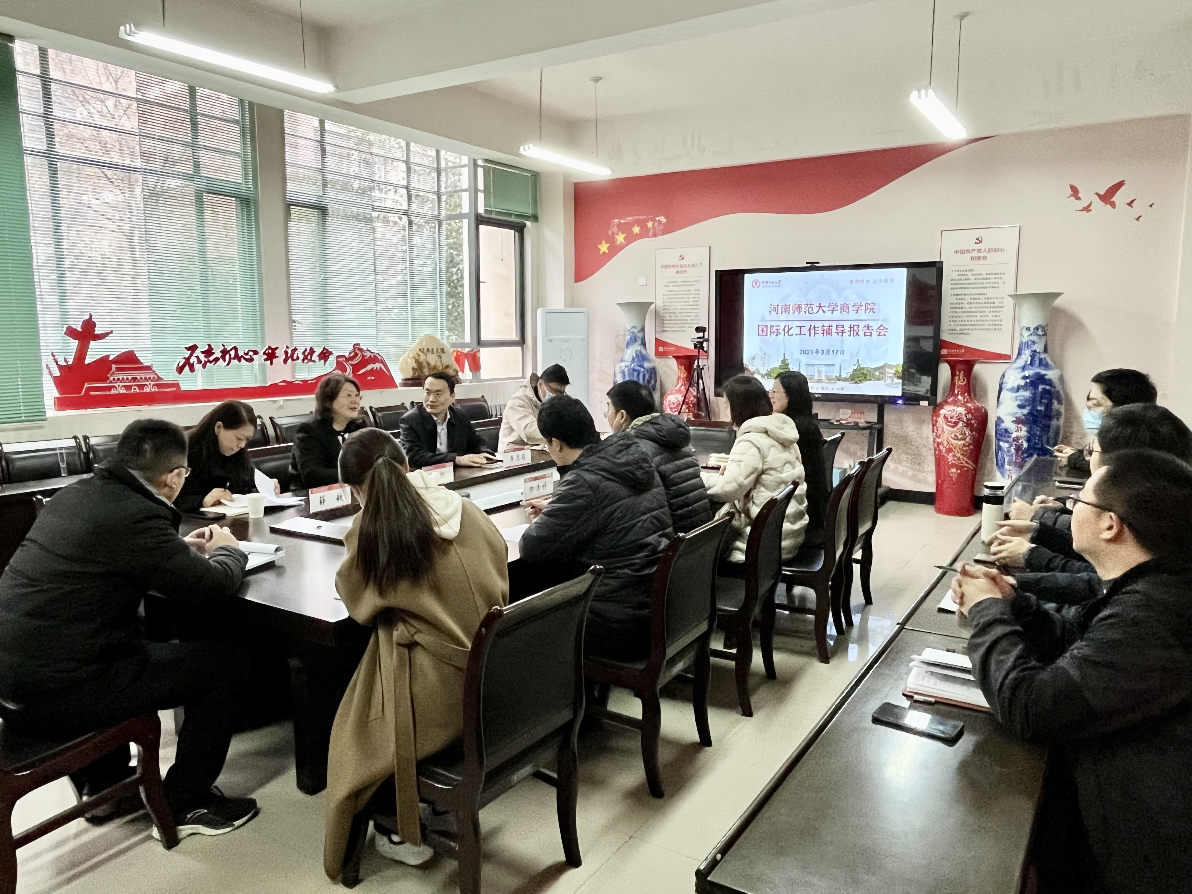 3月17日上午,商学院邀请国际合作与交流处赵扬处长在学院二楼会议室作了关于国际交流与合作专题辅导报告会,院党委书记李志前主持会议,学院党政领导班子成员、全体科技干部参加了会议。