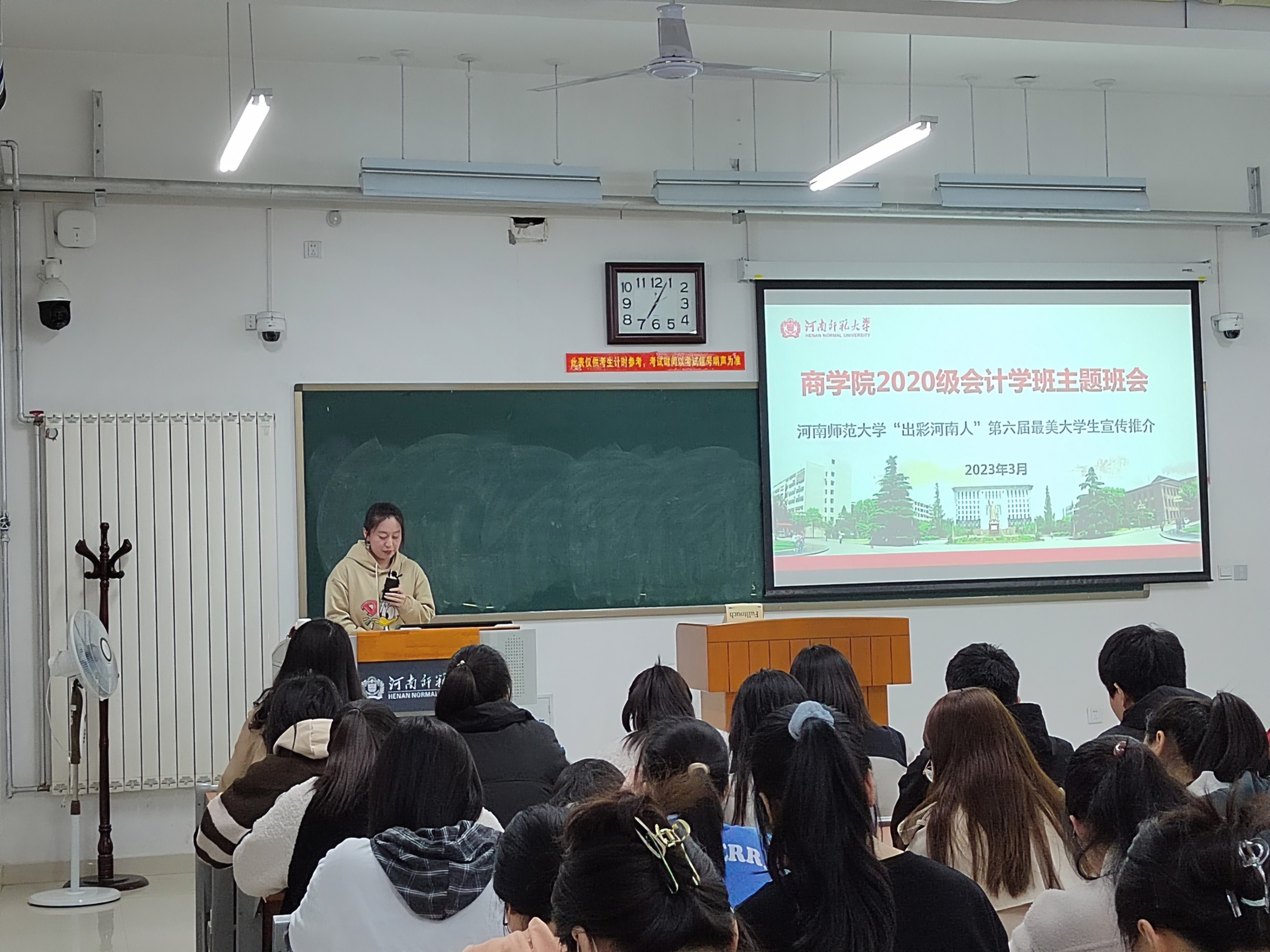 近日,学校“出彩河南人”第六届最美大学生评选结果公布,商学院2020级会计学专业学生程方南获评校级“出彩河南人”第六届最美大学生。3月22日晚,商学院于文昌楼108教室组织召开伟德官网下载苹果版“出彩河南人”第六届最美大学生宣传推介会,2020级会计学全体学生参会,会议由辅导员郑园园主持。