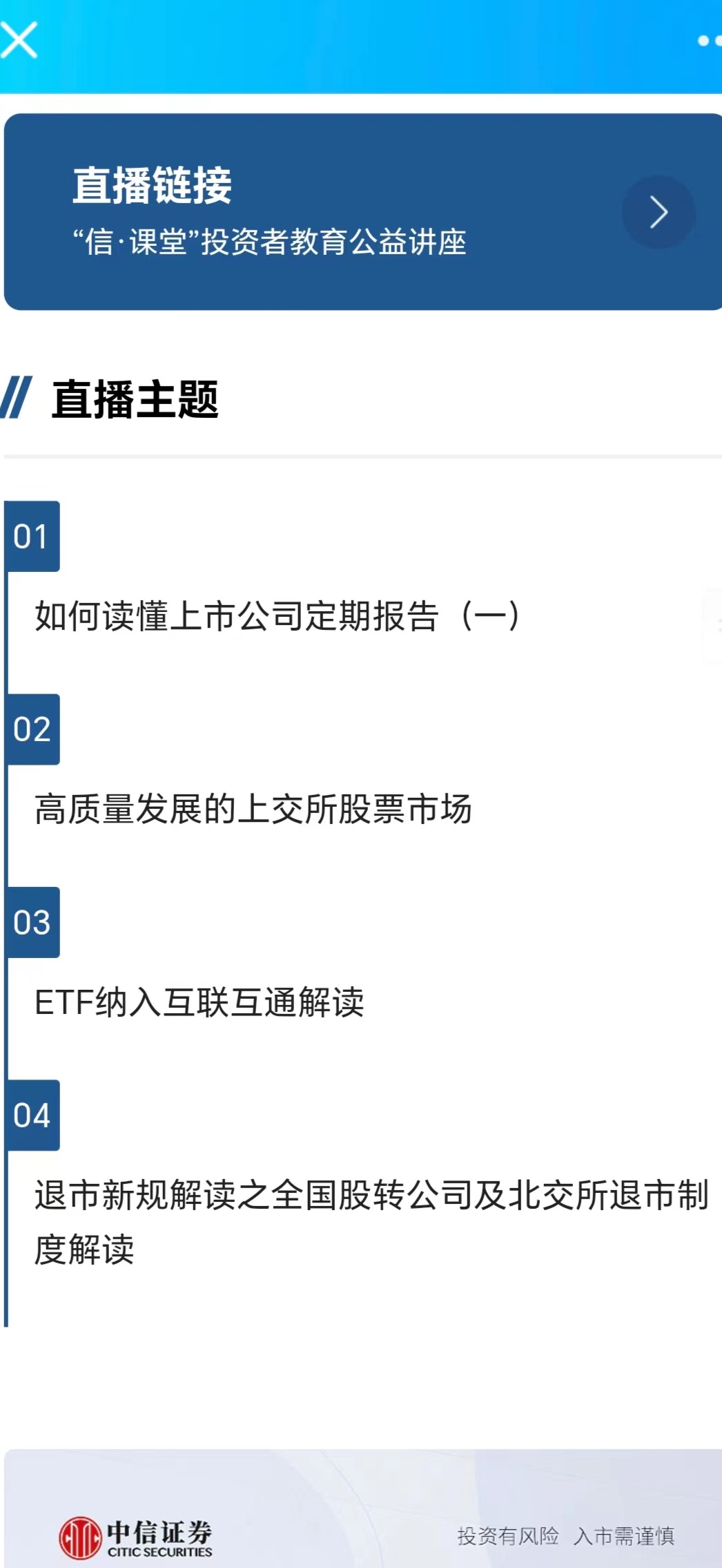 本次活动分为“打卡收集”和“活动排名”两个环节。活动期间,中信证券工作人员定时发布打卡链接,通过公众号推文、视频答疑以及信课堂科普三种途径,帮助同学们从经济法律、市场规则、行业主体、金融股市等方面掌握基金知识,拓宽知识层面,了解金融市场,知晓现代经济发展情况,做好个人发展规划;金融专家结合上市公司成功案例现身说法,以专业实用与通俗易懂的语言,为同学们讲授基金知识,帮助学生了解基金市场。其中,公众号推文深受同学们喜爱。在本次金融经济知识打卡活动结束之后,同学们受益匪浅,纷纷表示了解到经济市场发展的潜在规则,能够更好的将知识运用到实践中。