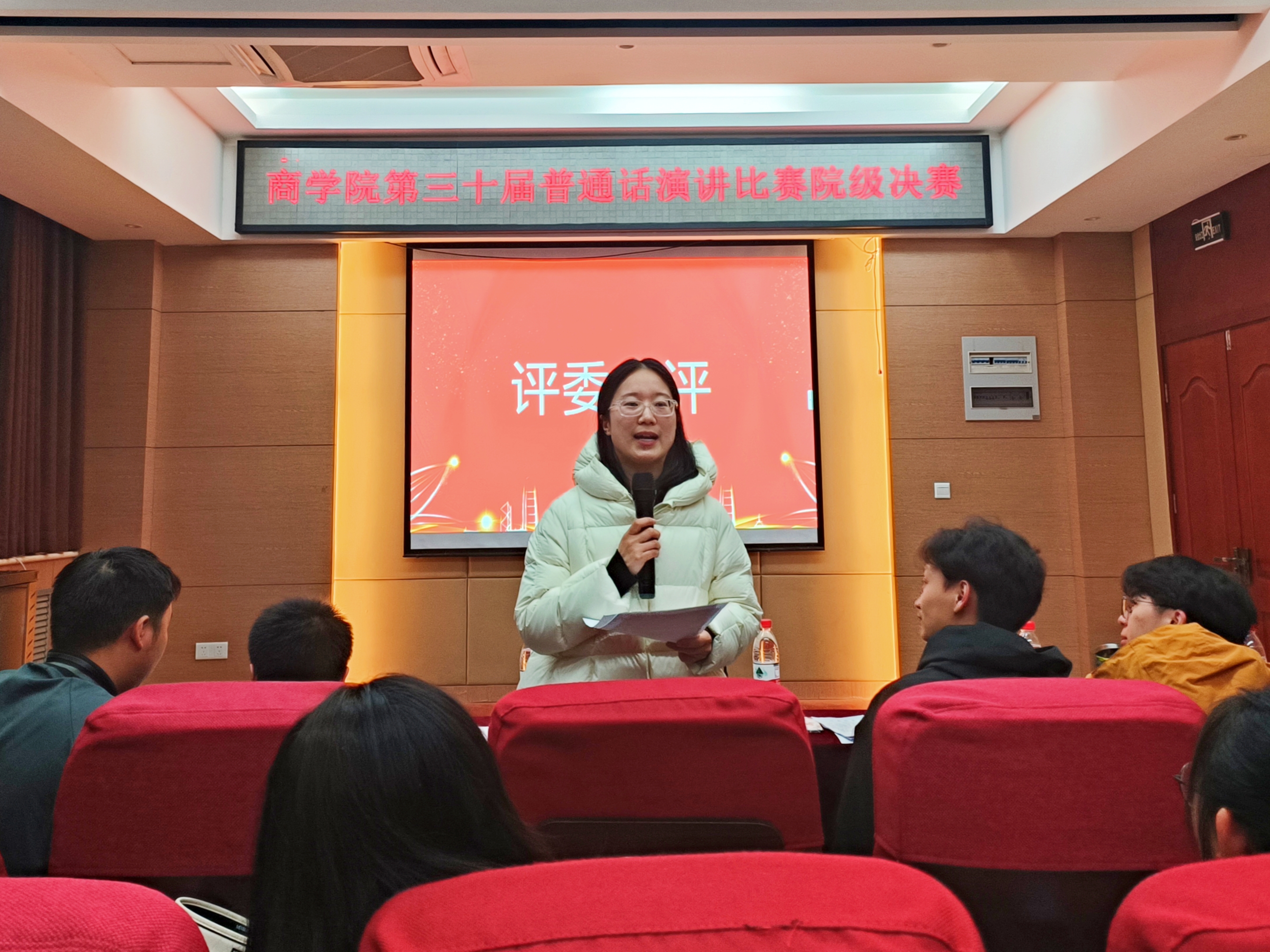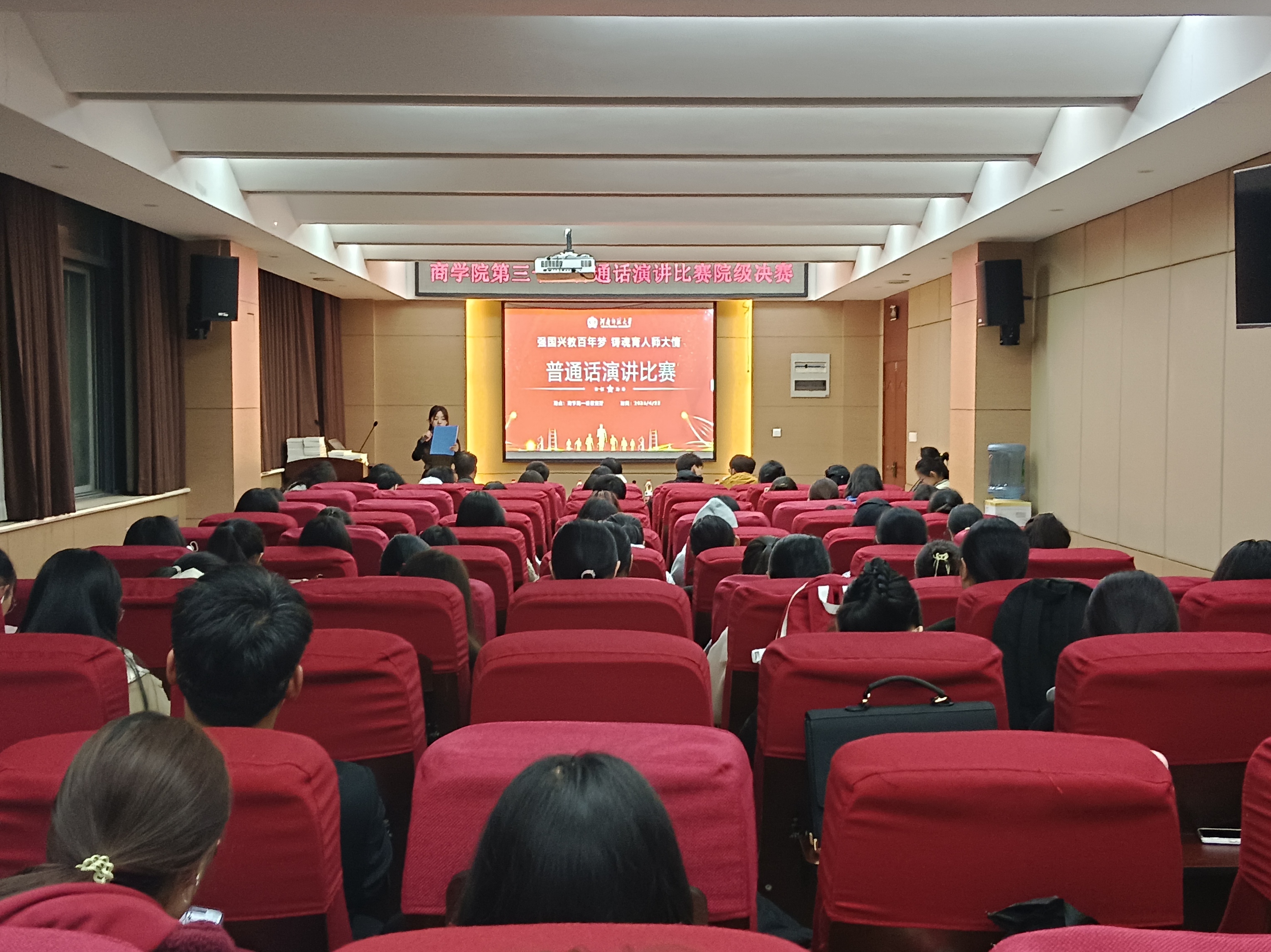 为全面落实党的教育方针,进一步弘扬师大学风,引导学生不断提升语言表达与运用能力,4月23日晚,商学院于学院119报告厅举办普通话演讲比赛院级决赛。商学院2021级专升本辅导员杨娜、历届获奖选手参加并担任评委,学院部分学生参加此次活动。
