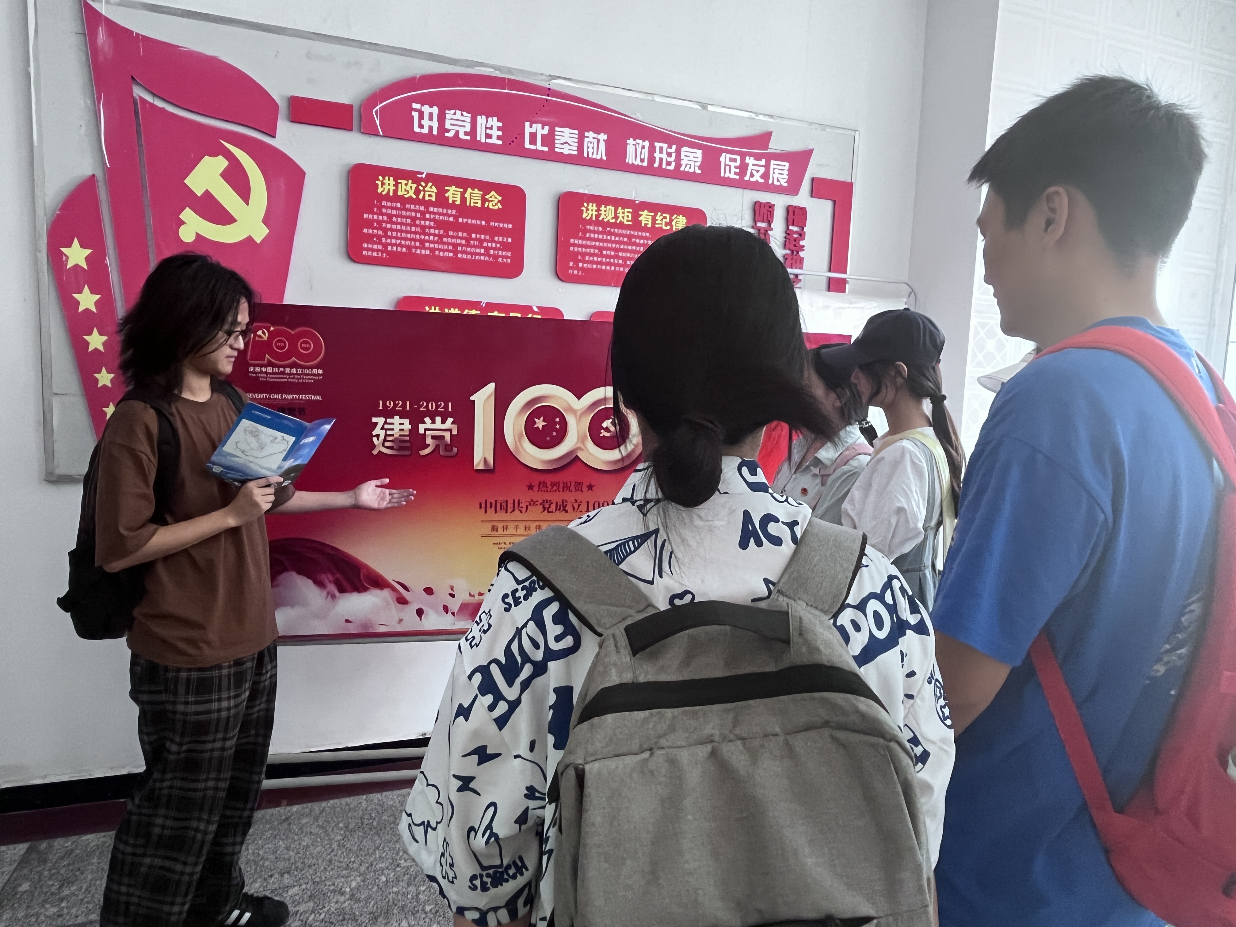 灼灼烈日与漫长路途并未磨灭队员们的调研热情。走过一间间展厅,端详一件件展品,聆听一句句解说,实践队员们在深度沉浸中感受科技魅力,在箜篌佳音绕梁中谈古论今,在石榴市花的内涵感知中大话新乡,在张謇出使西域典故中增进文化认同。在政务服务中心、中欧班列、智能制造产业园的参观中,队员们详细了解了经开区产业发展体系、发展历程及发展规划,不断重塑着对新乡经济发展的认知水平。工作人员骄傲地说道,“中欧班列新乡号四线齐发,是现代公铁物流港和新乡国际陆港的关键要素。在发行班次上,我们已经完成了一半的指标!”