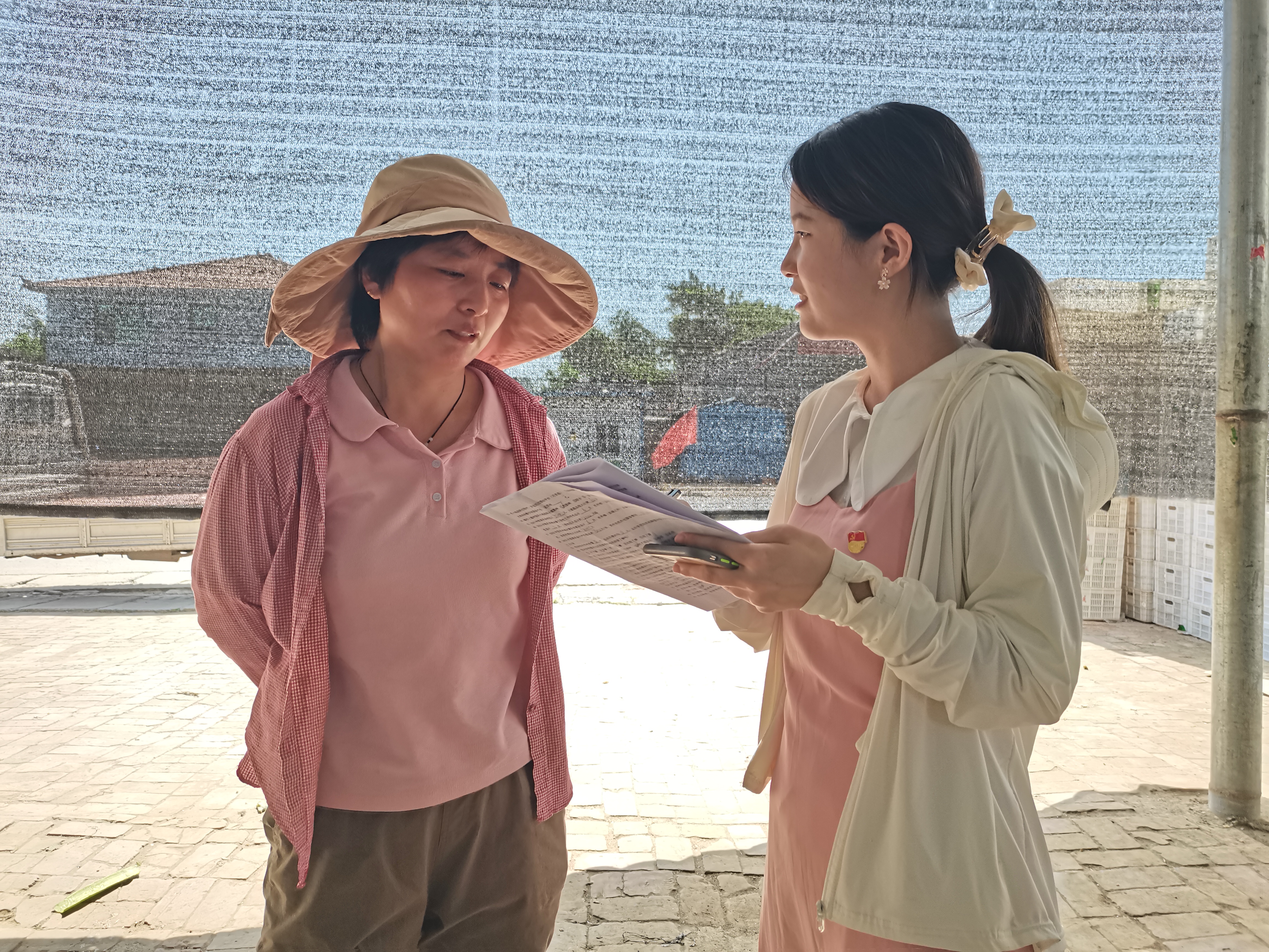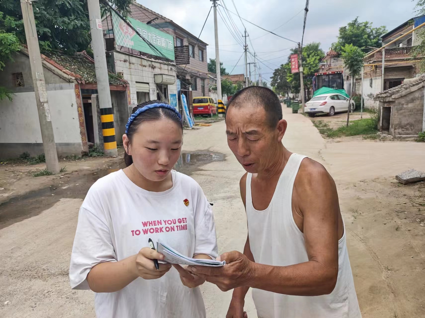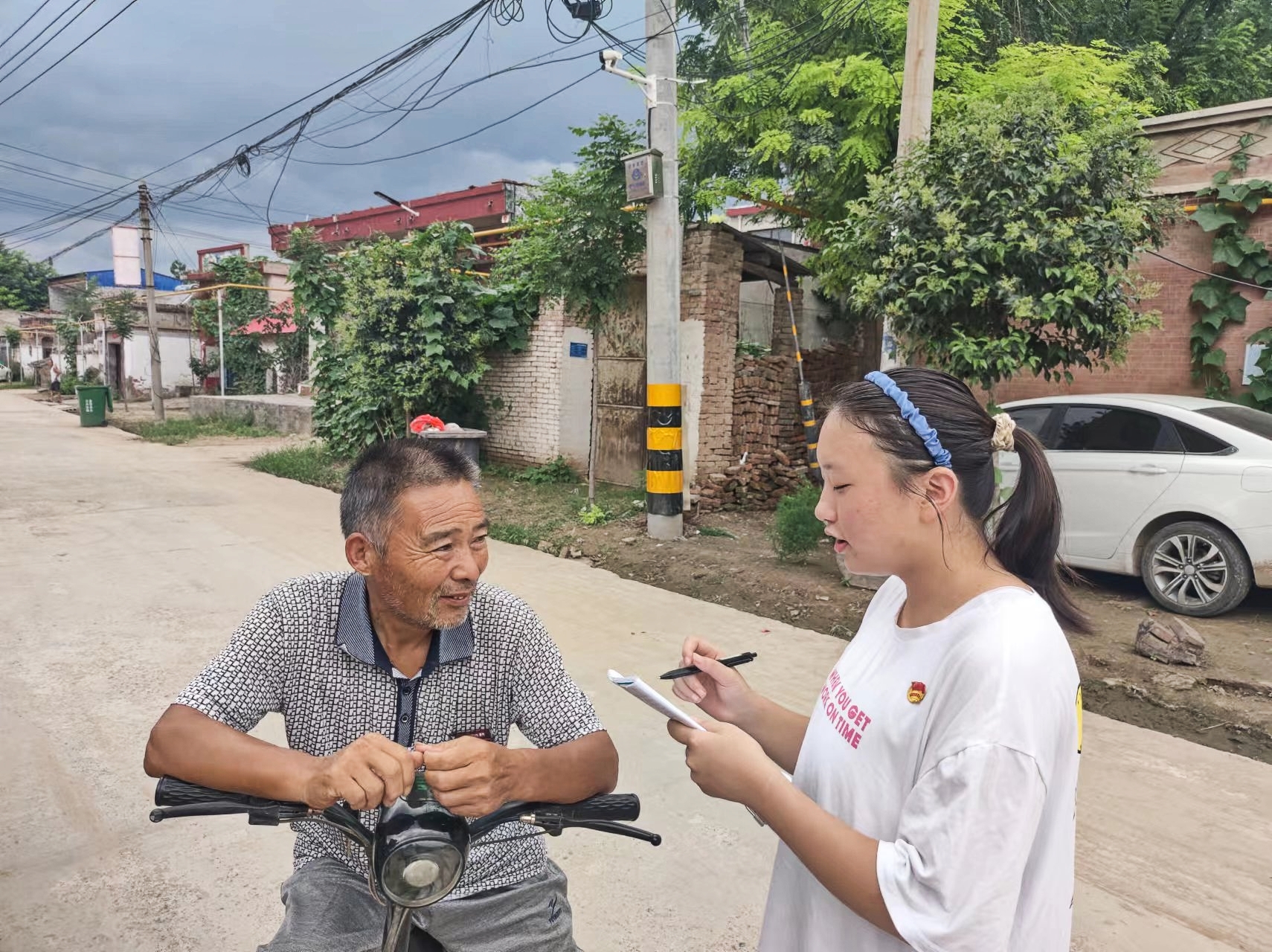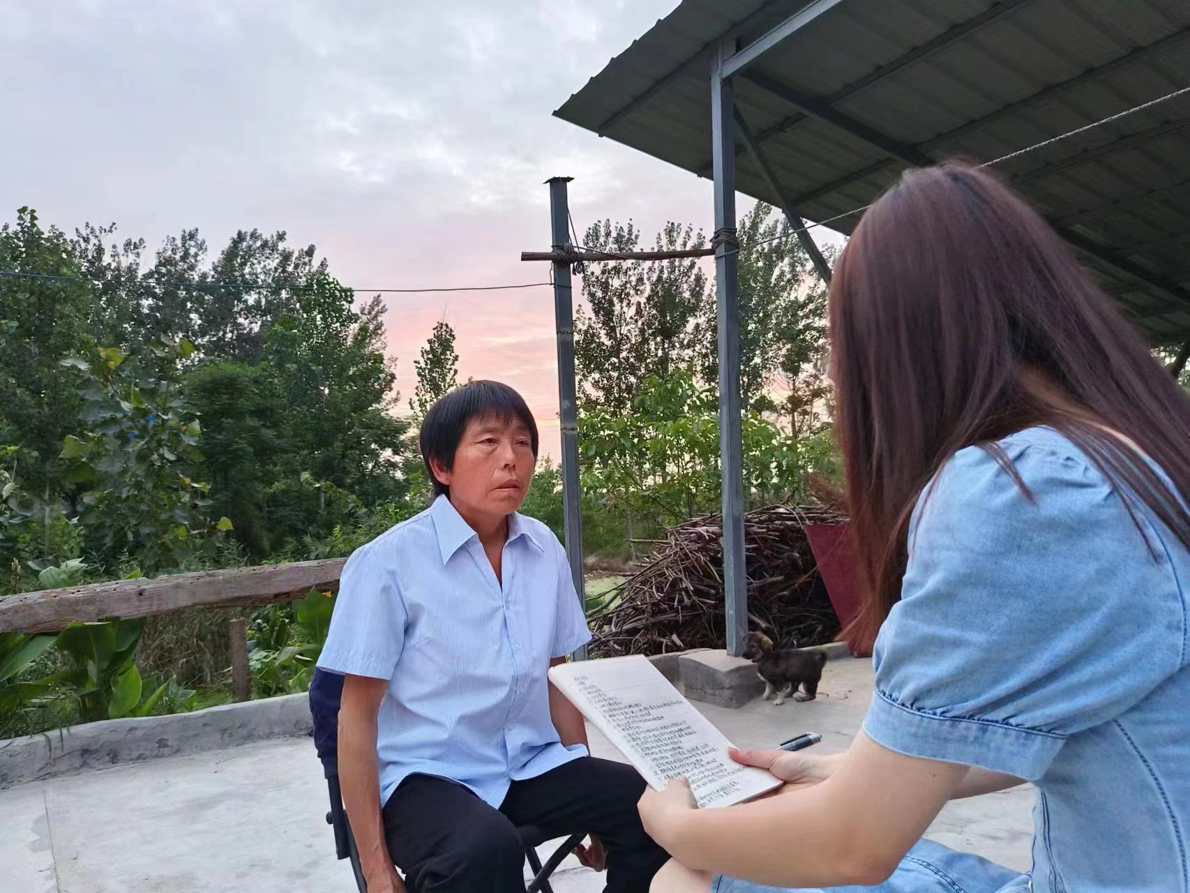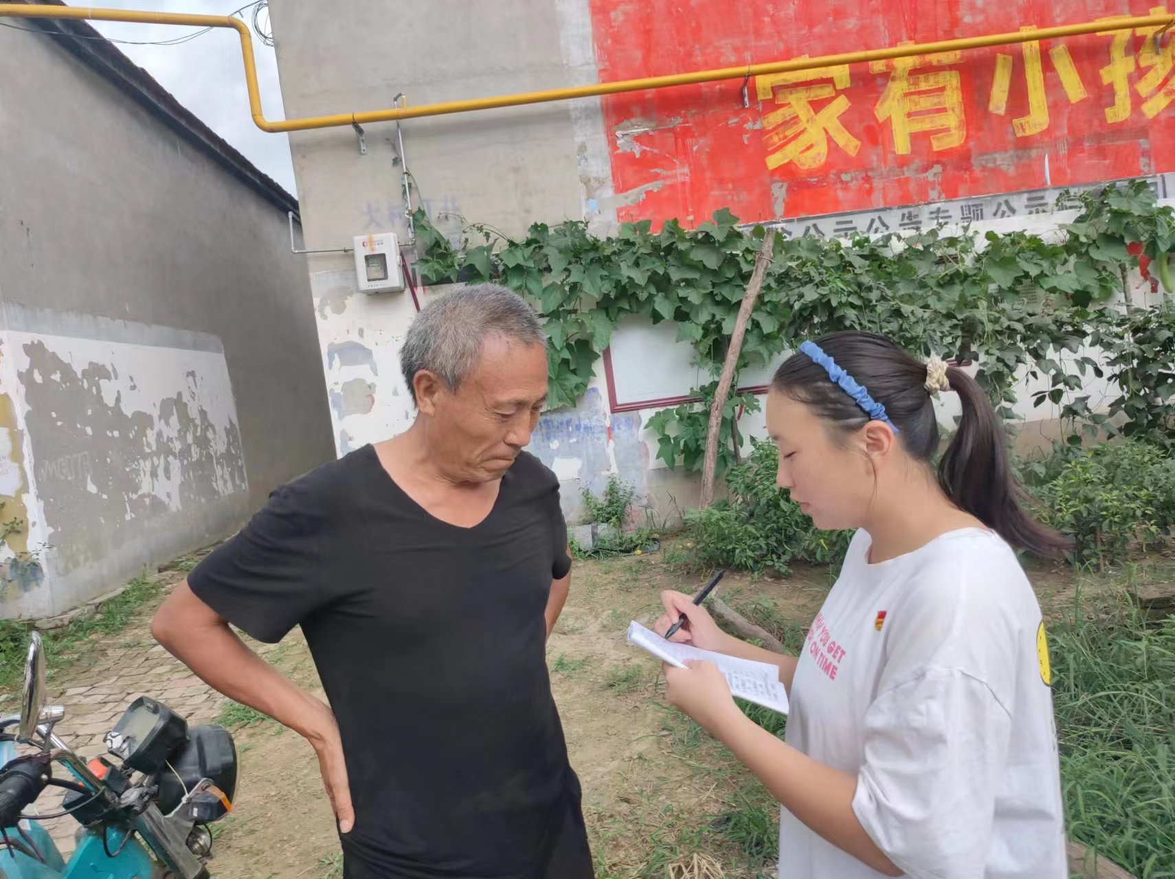 长夏炎炎,天气郁蒸,却难以盖过队员们洋溢的热情。调研团队深入濮阳县文留镇新尚楼村、徐镇镇后范村与清丰县固城镇张庄里村、固城镇黄焦村等地开展走访调研。调研过程中,在村干部的带领下,队员以“访谈+问卷+笔录”的形式逐户进行访谈,同村民深入交流,村民积极参与,专注回答问题。其中,一位村民说到:“村委会在土地流转过程中细心关照农民,关注村民需求,为农民生计提供很多建议与帮助,农民生活也变得更加美好啦!”