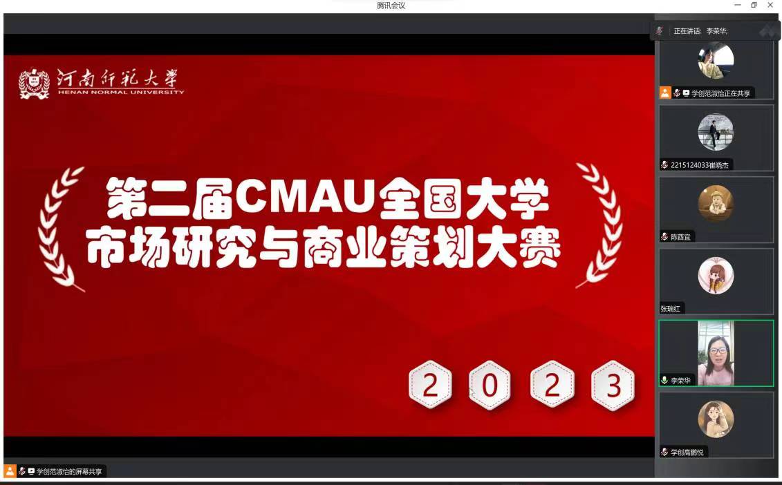 2023年7月9日晚,第二届CMAU市策大赛校级选拔赛通过线上方式由我校商学院成功举办,商学院相关负责人与评委老师参加本次会议,参赛小组全体成员参加了汇报答辩。该赛事由中国高等院校市场学研究会与Credamo见数联合主办,通过与行业直接对接,以企业迫切需解决的“真问题”为命题,旨在锻炼与培养学生的市场研究与商业策划及团队协作能力。