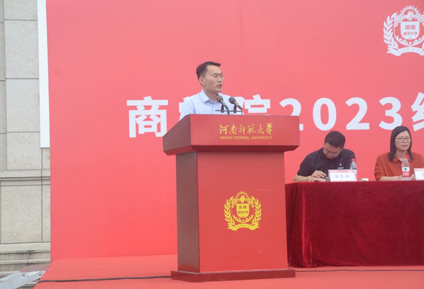 9月11日下午,商学院2023级新生“开学思政第一课”于实训楼北广场顺利举行。学院党政领导、各教研室主任、2023级班主任、学院优秀校友代表、各年级专兼职辅导员及2023级全体新生共同聆听了“书记第一堂思政课”。