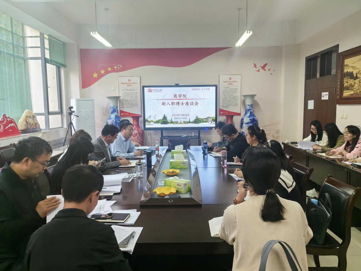 10月25日下午,商学院在学院二楼会议室召开了新入职教师座谈会,学院全体领导班子成员、近三年入职青年教师参加了此次会议。座谈会由学院副院长刘新争主持。