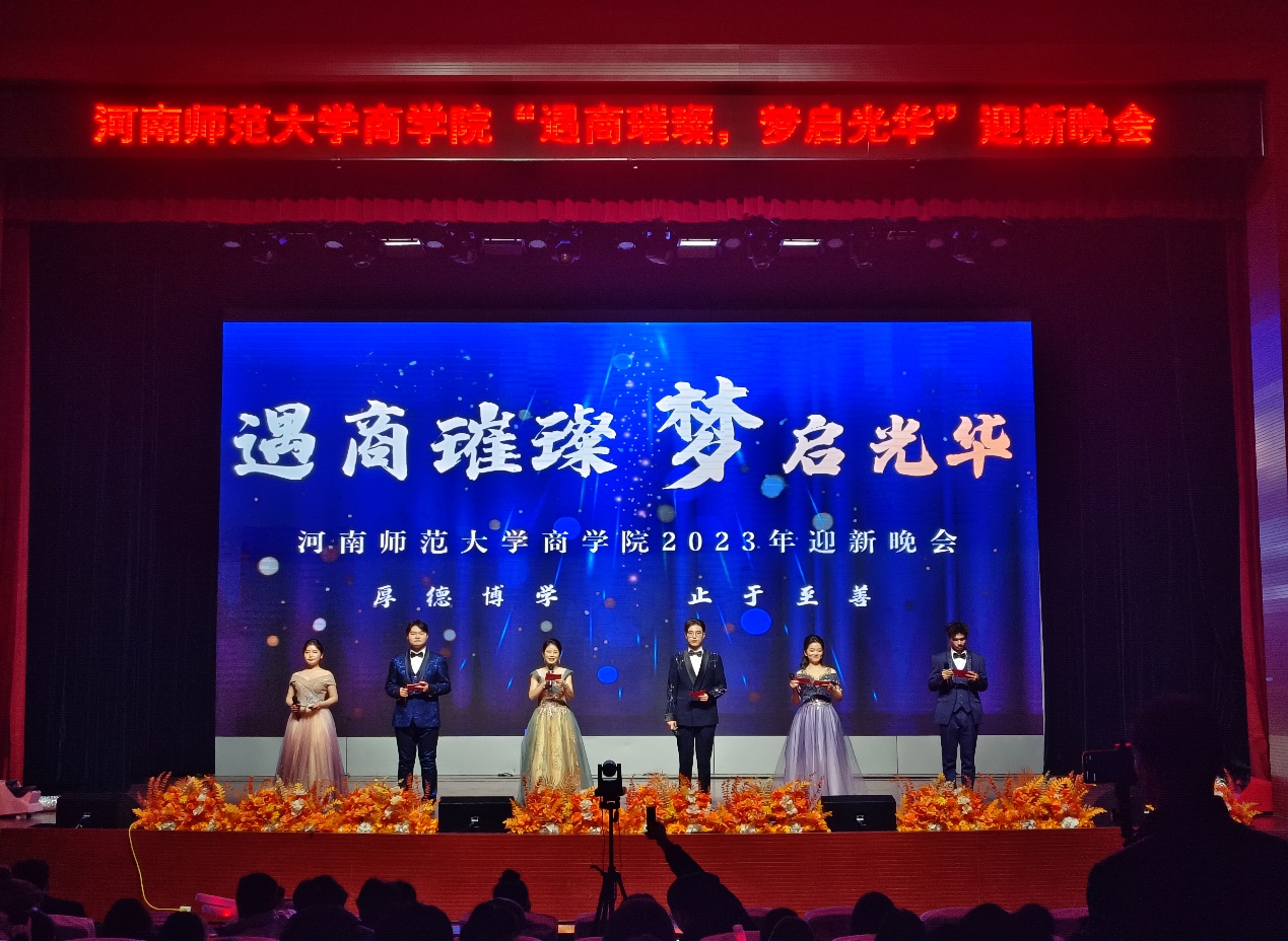 立德树人,商梦启航;培根铸魂,商善而行。11月25日晚,商学院于伟德官网下载苹果版附属中学礼堂举办“遇商璀璨,梦启光华”2023年迎新晚会。学院全体领导、专兼职辅导员及2023级全体学生参加本次晚会。