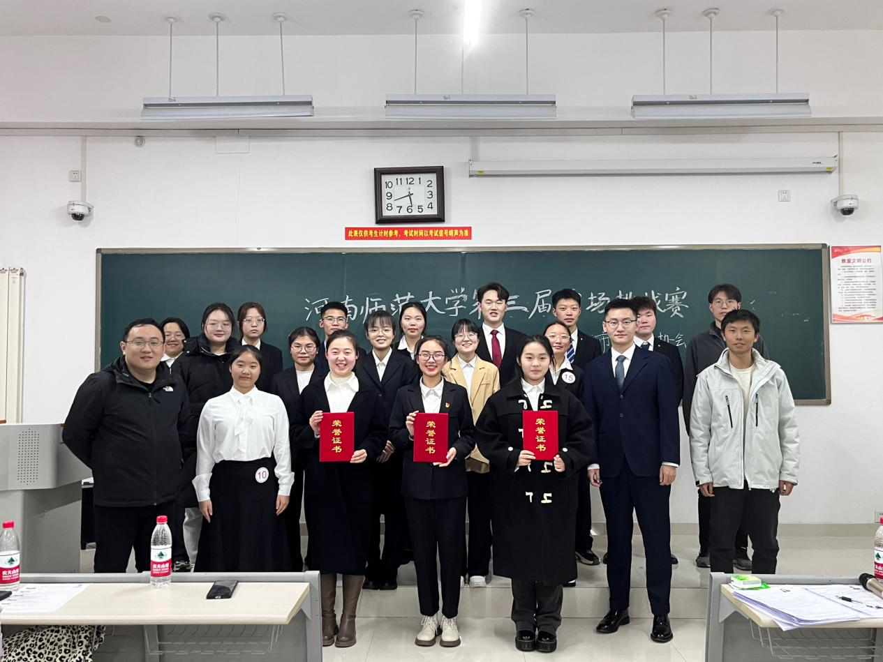 比赛分为面试者自我介绍、面试官提问两个环节,参赛选手应聘行业主要集中在教育、企业和公务员三个方向。比赛伊始,参赛选手镇定自若、侃侃而谈,结合求职意向、职业规划作自我陈述,充分展现竞聘优势。评委根据参赛选手自我陈述进行深度提问,考察面试者临场应变能力和职场综合素质。王朴玙强调面试时应注意语言表达、仪容仪表、简历制作等问题,同时针对选手面试过程中的问题,给予专业性指导意见。随后,在场评委们秉持公平公正的原则,评选出一、二、三等奖。其中,彭悦同学凭借自身缜密严谨的思维、清晰流畅的表达和对自身职业生涯的清晰规划,荣获一等奖。比赛结束后,郭琛昊总结发言,他赞扬同学们竞聘时的自信与勇气,希望同学们踊跃参加相关活动,提高专业素质能力,树立职业生涯规划意识,为未来求职之路夯实坚实基础。