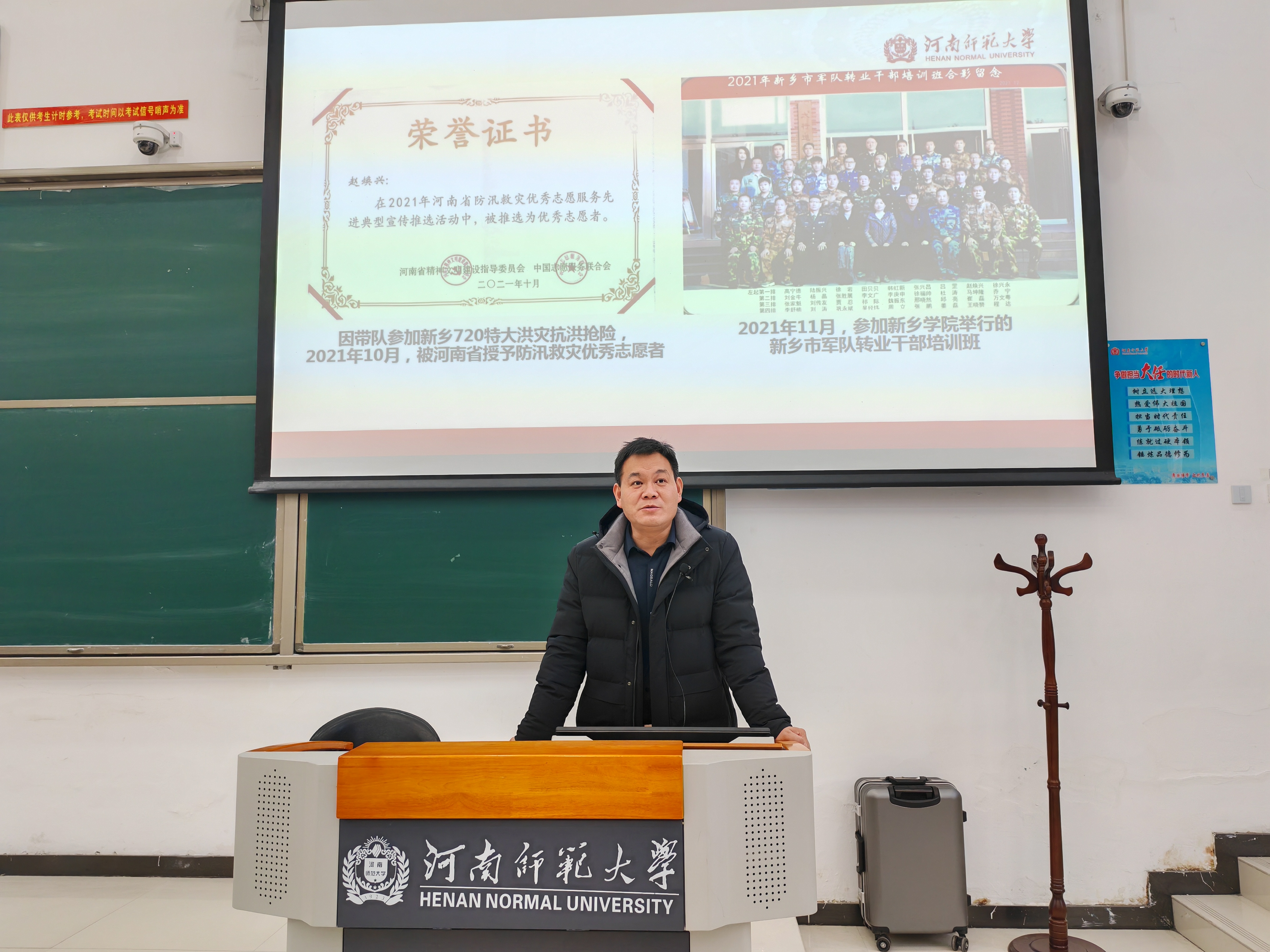 为进一步贯彻落实学校关于征兵工作的部署与安排,帮助大学生了解参军入伍政策与流程,鼓励2024届毕业生积极响应国家号召参军入伍,12月27日下午,商学院于文昌楼127教室举办2024年征兵宣讲会,校党委学工部副部长赵焕兴、外国语学院退役士兵张佳琦受邀作报告。2020级专兼职辅导员以及全体毕业生参会,会议由2020级辅导员赵玮主持。