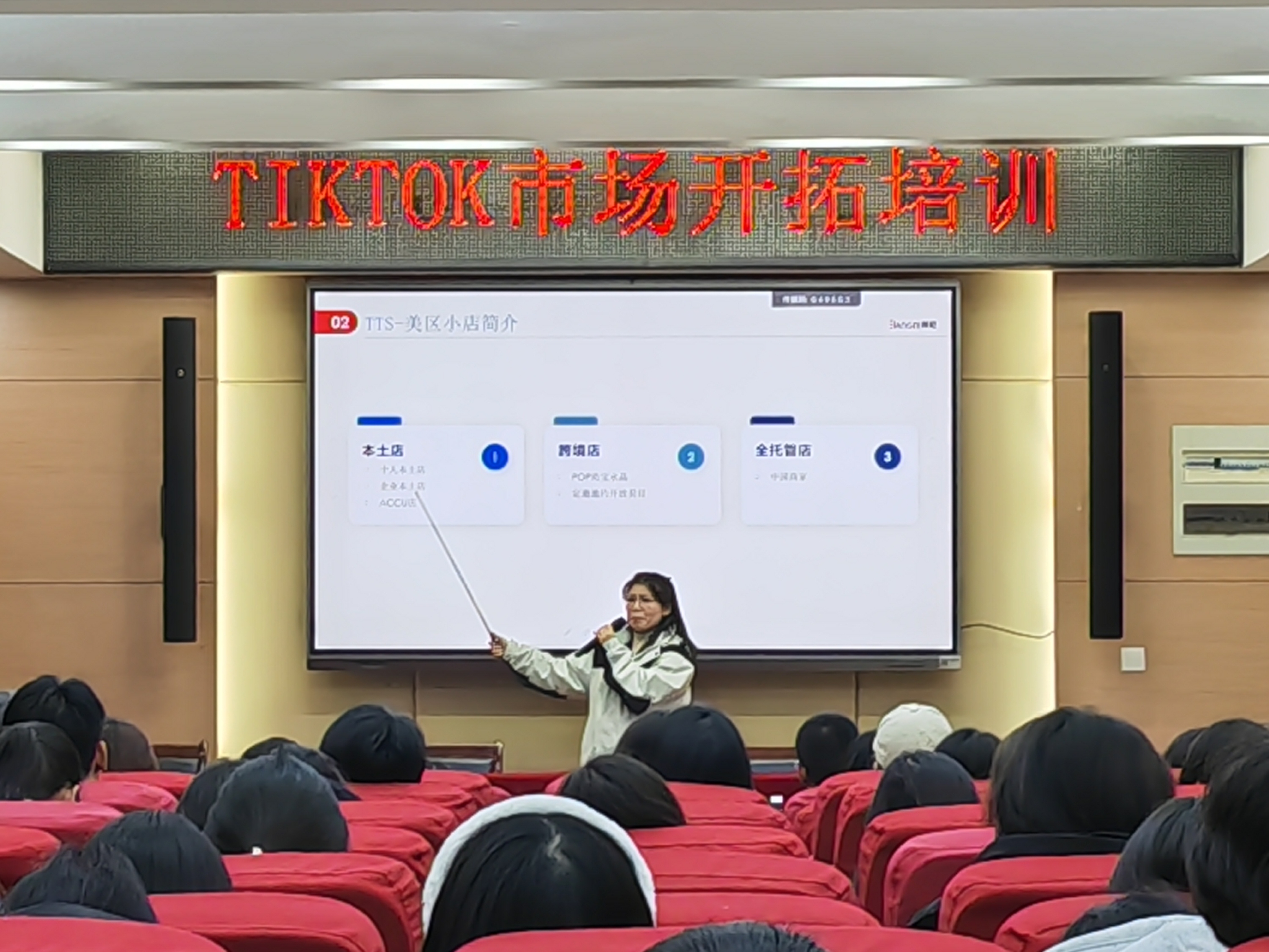 为帮助学生加深对海外抖音市场的认知,提高商学院学生的综合素质,培养潜在性商业人才,3月2日晚,河南邦尼生物工程有限公司跨境运营主管受邀于商学院119报告厅开展TIKTOK市场开拓培训活动。本次活动共计100余人参加。
