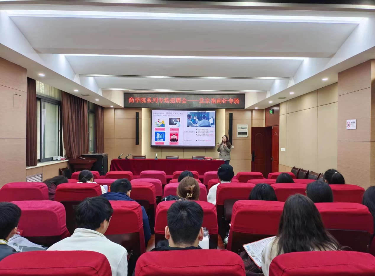 为深入实施就业优先战略,充分发挥校园招聘主渠道作用,推动校企联合,3月18日上午,北京指南针科技发展股份有限公司于学院119报告厅举办专场招聘宣讲会。商学院2024届本硕毕业生及其他年级学生代表参加此次会议。