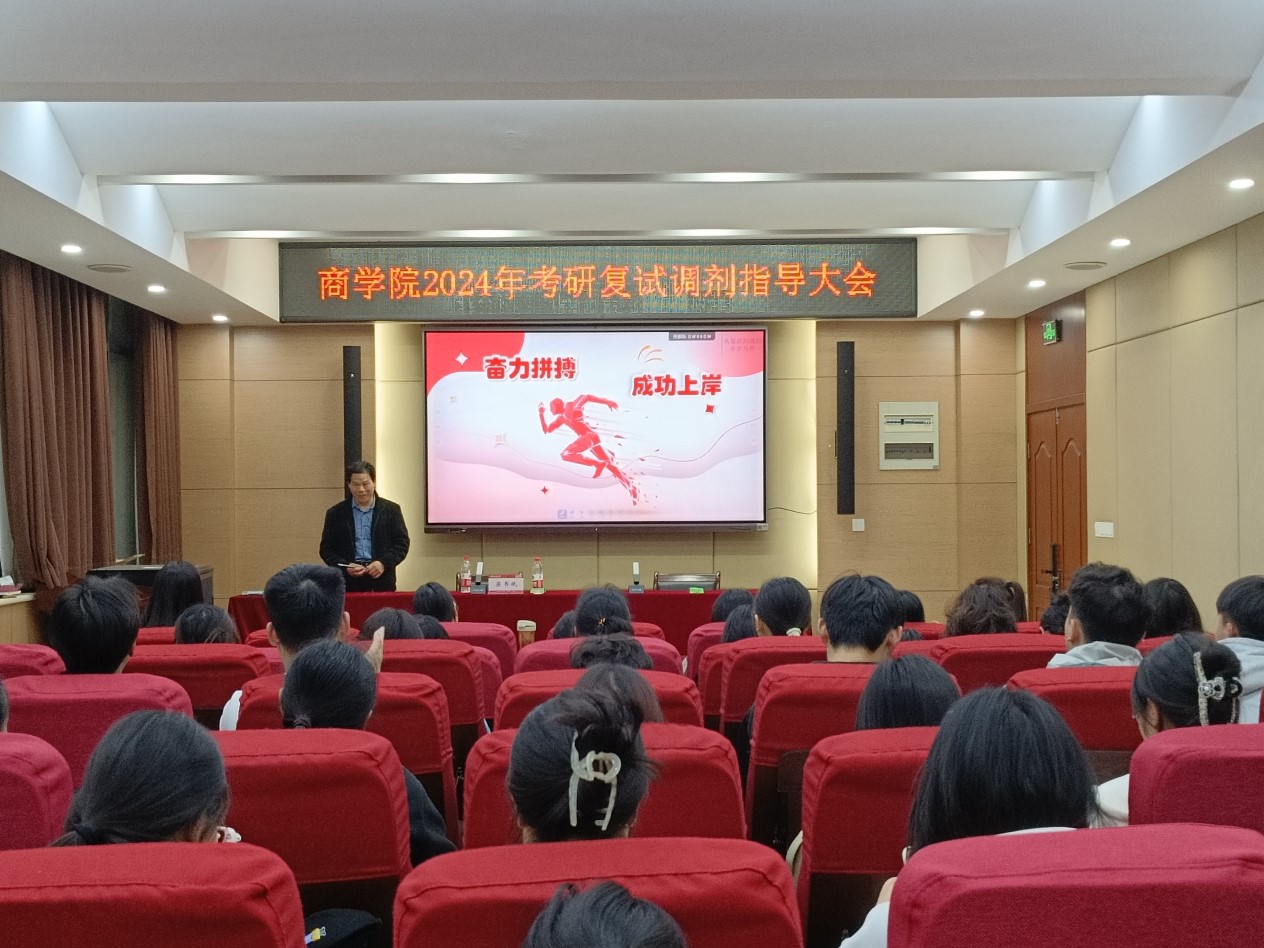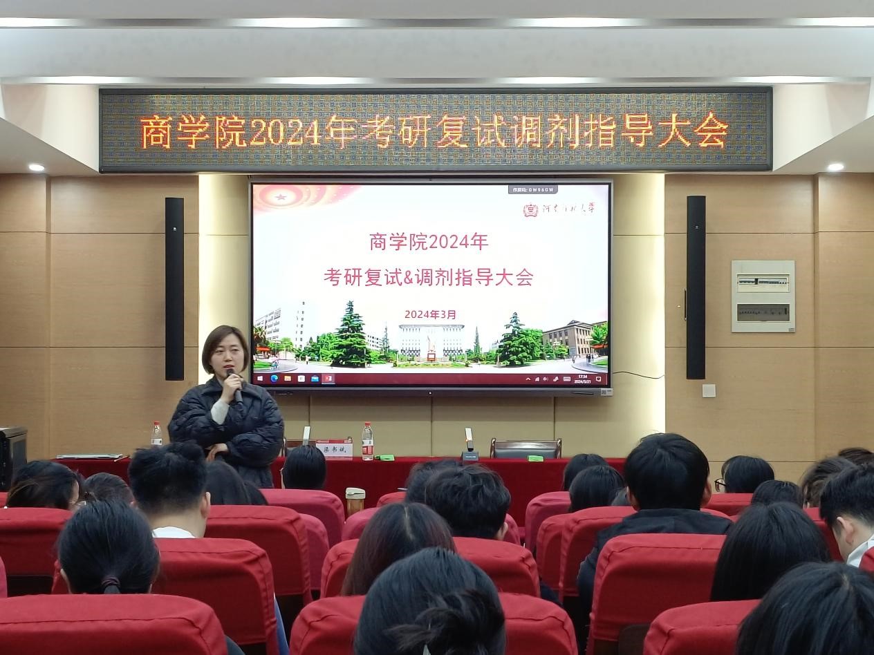 为切实帮助考研学生顺利开展复试及调剂工作,提高学生复试通过率,3月22日下午,商学院于学院119报告厅召开2024年考研复试调剂指导大会。会议邀请学校网络中心副主任担任主讲,学院百余名上线考生参加,学院党委副书记马淑明主持会议。