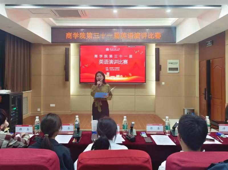 为丰富学生校园文化生活,营造浓厚的英语学习氛围,4月10日晚,商学院于学院119报告厅举办第三十一届大学生基本技能大赛之英语演讲比赛院级决赛。环境学院张鹏伟、外国语学院郭夏月、聂雨涵同学应邀出席并担任比赛评委,学院部分学生到场观看。